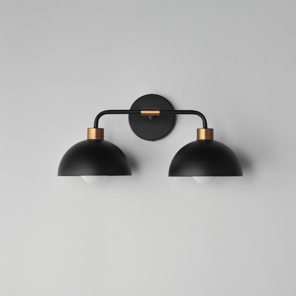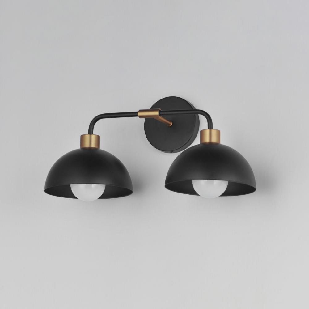 Dome shaped shades in Matte Black contrast Natural Aged Brass accents. Available in flush mount, bath vanity, and swing arm wall sconce configurations. This collection delivers an approachable, modern design that pairs well with transitional design aesthet