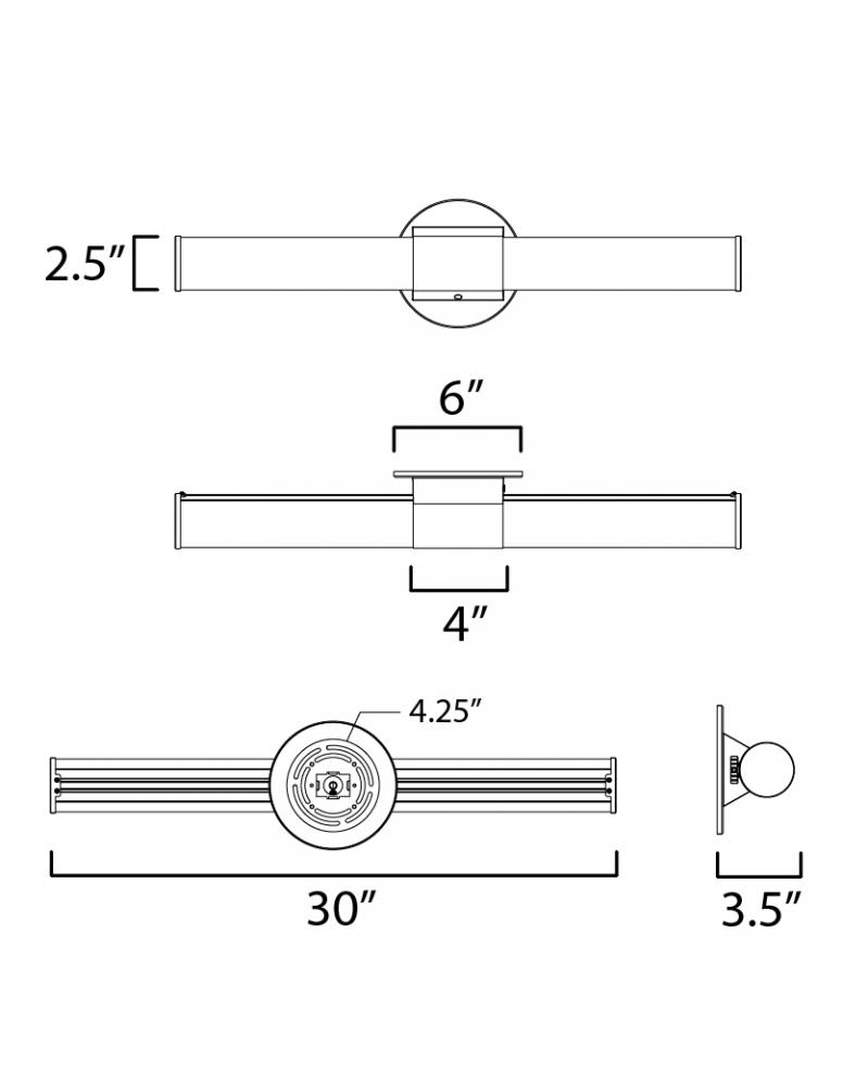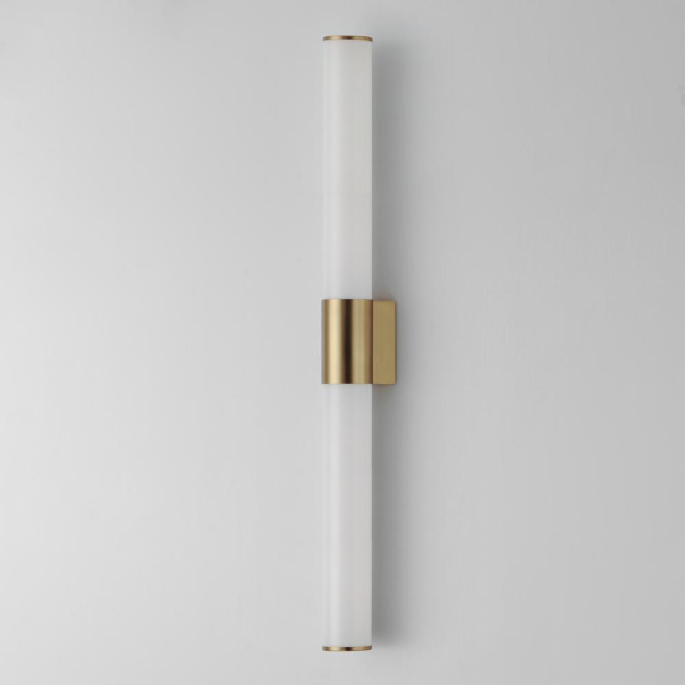 A tube of light extends in both directions in this clean and contemporary LED wall sconce. Available in various lengths and finishes, the fixture can either be mounted directly from its frame on a single gang box or with the use of the five inch cover plat