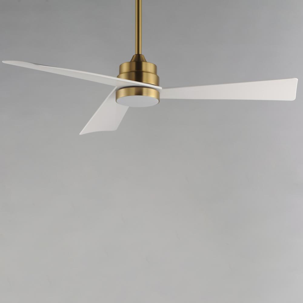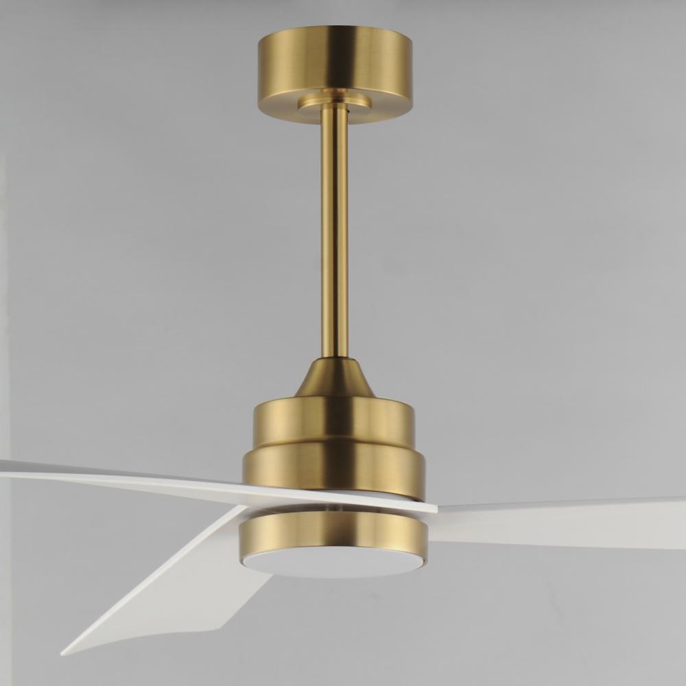 Sharp angular blades come together at the center housing of this fan for a modern, yet transitional look. Available in finishes that match most interior spaces, select from Matte Black, Satin Nickel with Greywood, Natural Aged Brass with White Blades and C
