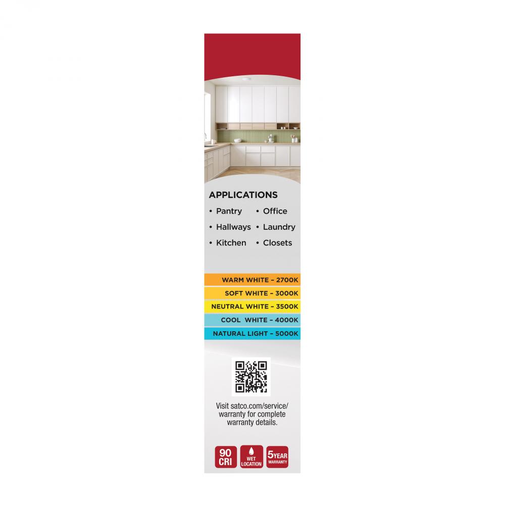 Engineered for safety and performance, SATCO NUVO's 62-1805R1, NEC Compliant CCT Selectable Disk Light in a 7" white design is certified for use in clothes closets, meeting NEC 410.16(A)(3) and 410.16(C)(5) requirements. This fixture consumes just