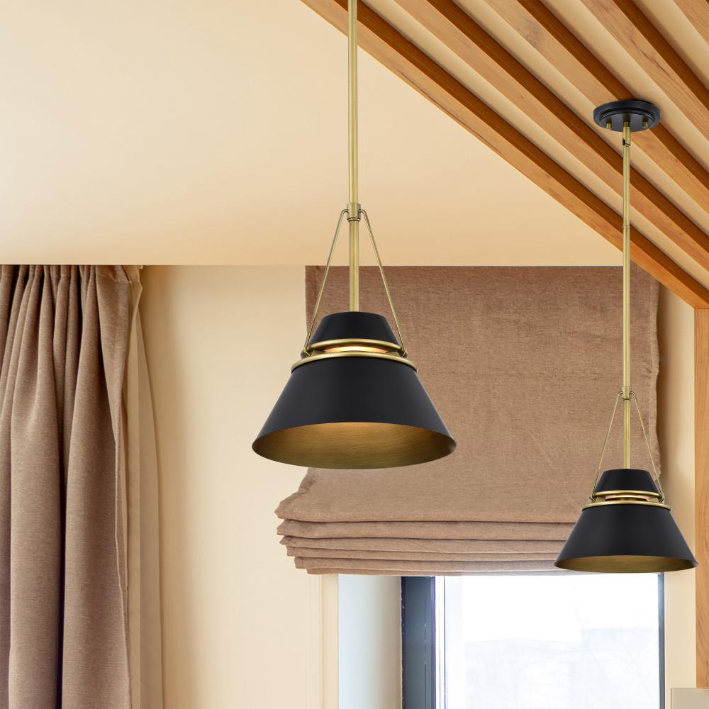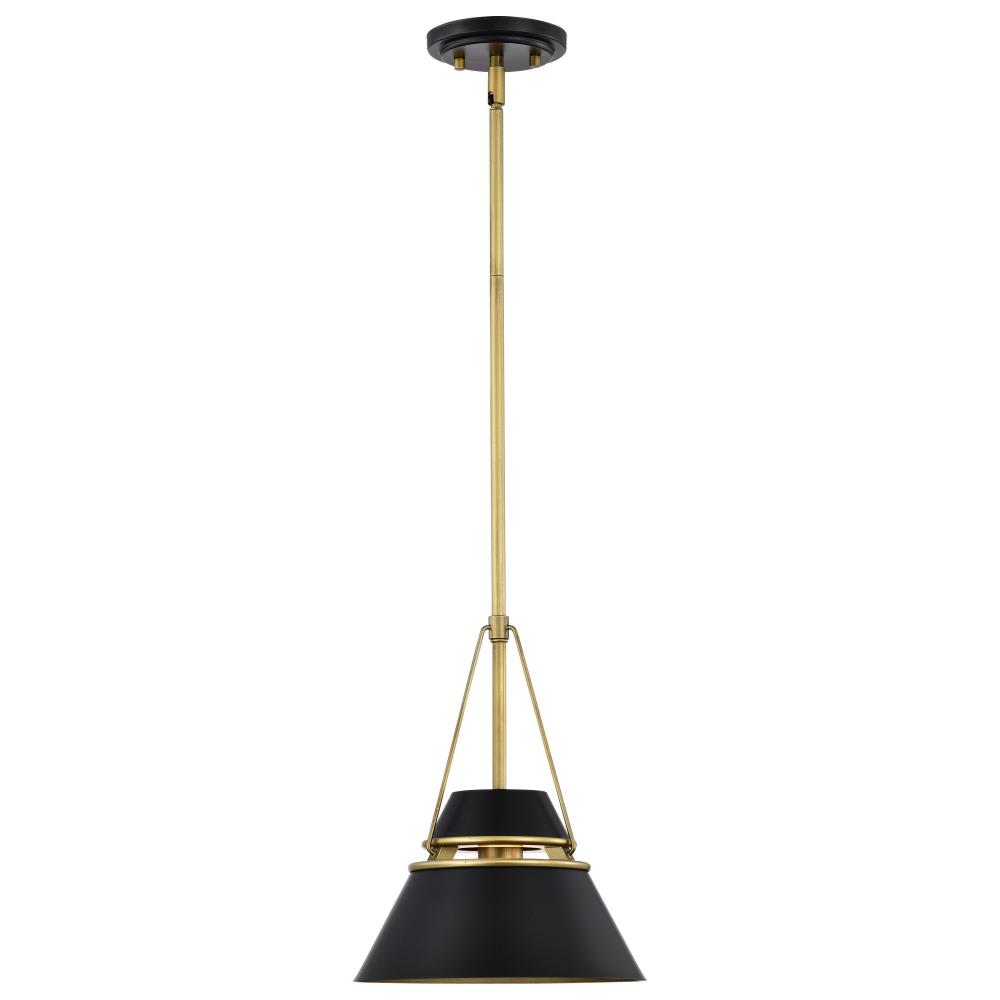 A stunning small-sized pendant that blends contemporary style with streamlined design elements, Adina 60-7767, is effortless lighting at it's finest. Complimented with natural brass accents, the matte black finish is sleek, showcasing its clean lines.