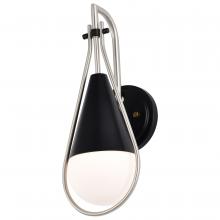 A modern collection with a twist, the Admiral 60-7911 one light wall sconce features a dual finish, unique design, and a fashionable statement for home luminaires. A suspended tear-dropped shape is comprised of matte black with brushed nickel elements enco