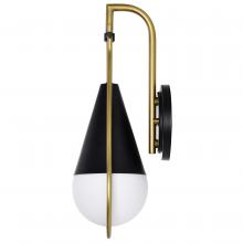 A modern collection with a twist, the Admiral 60-7901 one light wall sconce features a dual finish, unique design, and a fashionable statement for home luminaires. A suspended tear-dropped shape is comprised of matte black with natural brass elements encom