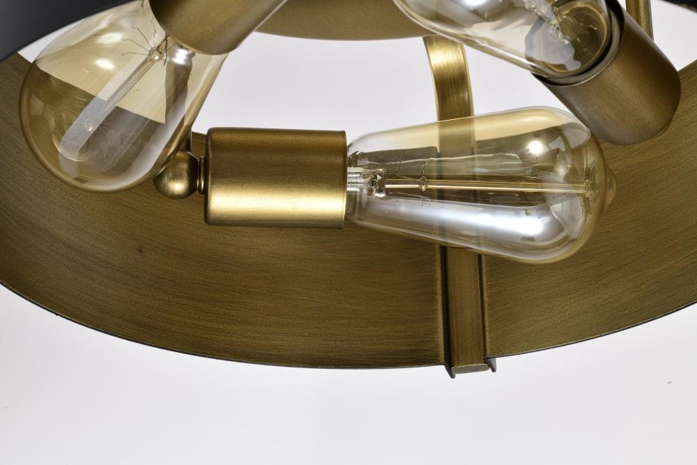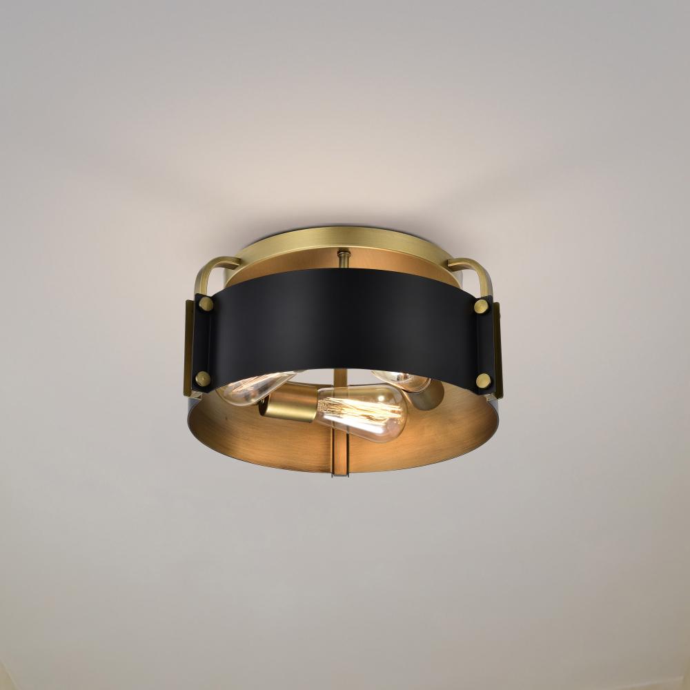 Altos 3 Light Semi Flush; 14 Inches; Matte Black and Natural Brass Finish