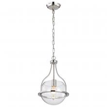 Elegant, transitional allure completes the Amado 60-7816 small pendant with it's unassuming style. The sleekness of polished nickel brings graceful refinement and the clear glass bowl delicately showcases the light and is encompassed in graceful lines
