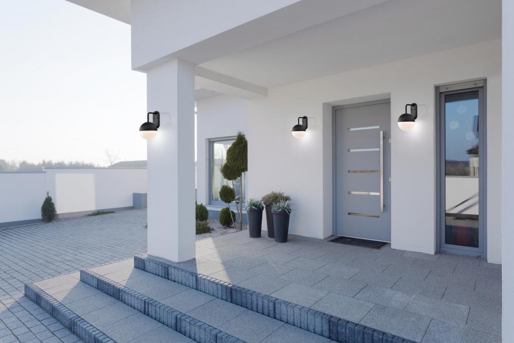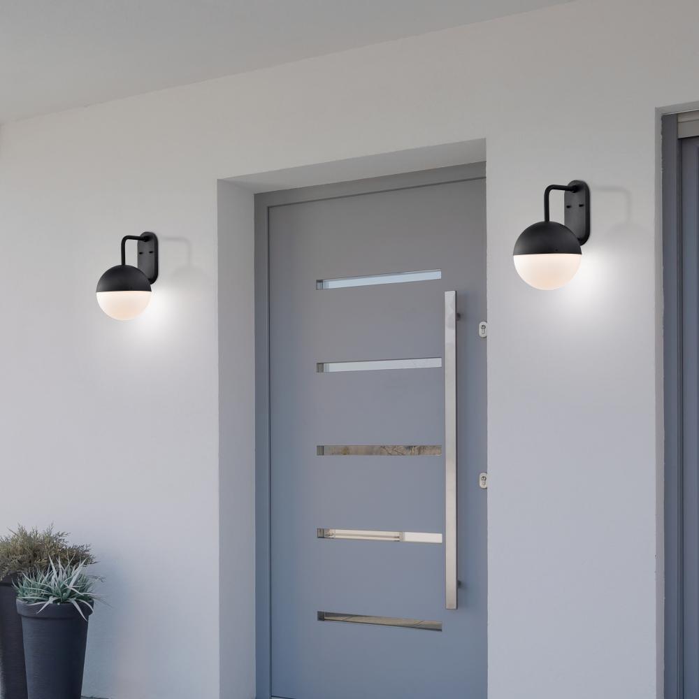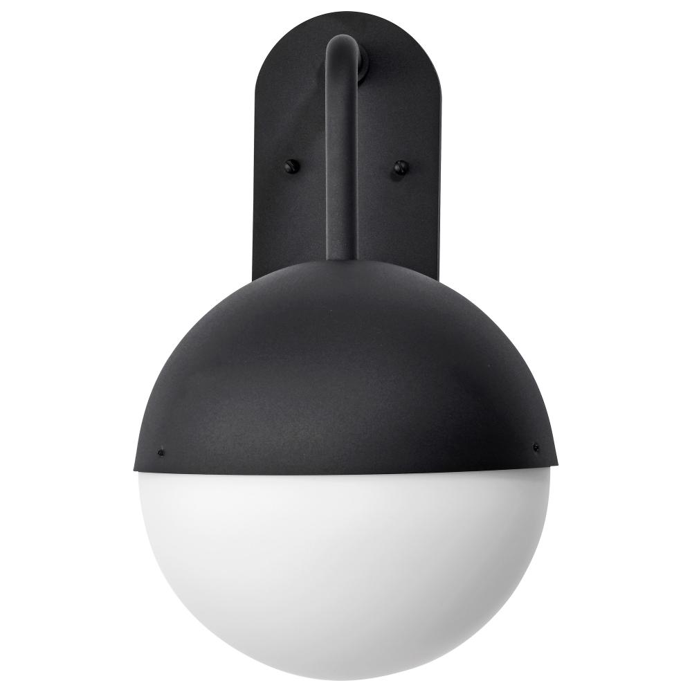 The Atmosphere 62-1617 LED large outdoor wall lantern makes a giant impact with its minimal design. The integrated LED module is housed within a sphere of matte black-finished metal and opal glass and is suitable for all exterior applications. The single-a