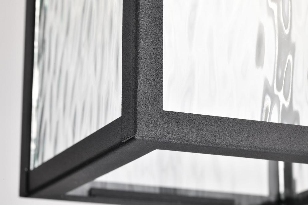 The Austen Lighting Series features a classic design that brings a romantic charm to the outdoors in its transitional style. An elongated metal structure is finished in a versatile matte black to coordinate with existing finishes. The rippling water glass