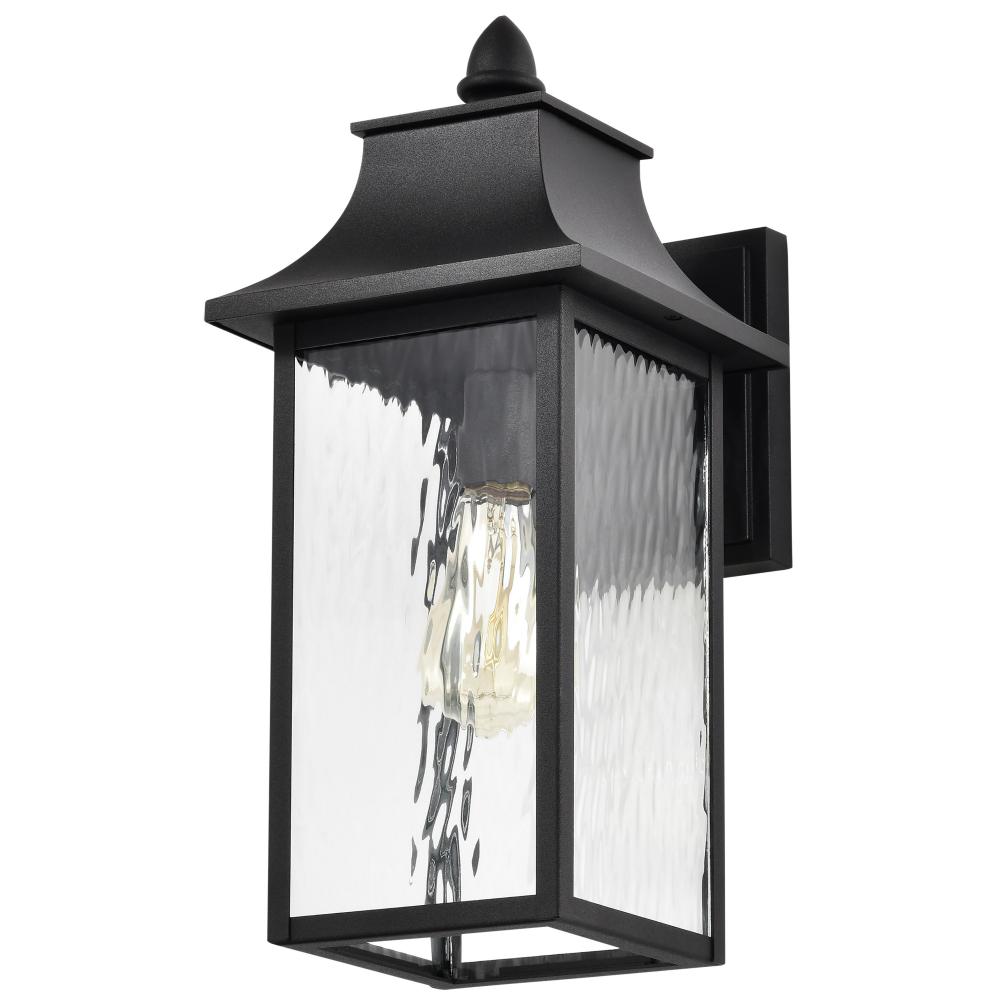 Austen Collection Outdoor 17 inch Large Wall Light; Matte Black Finish with Clear Water Glass