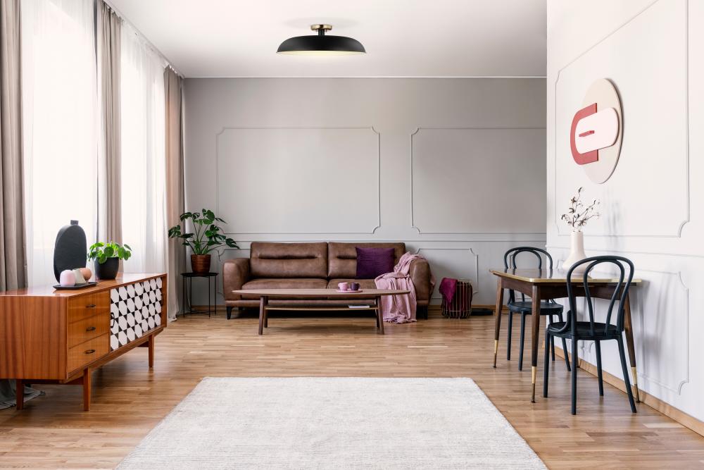 Designed with neutral, clean lines, the Colony 60-7497 large semi-flush is ideal for an eat-in kitchen, entryway, hallway and even a bedroom. The loft-style shallow pan metal shade is done in matte black, with a white interior to reflect the downfacing lam