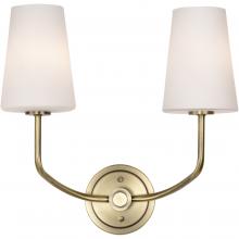 The design of the Cordello 60-7882 two light wall sconce is traditional and elegant, with beautiful curves and crisp shades. The elongated shades add a sense of drama and are etched white, diffusing the light for a soft glow. The minimalist design is accen