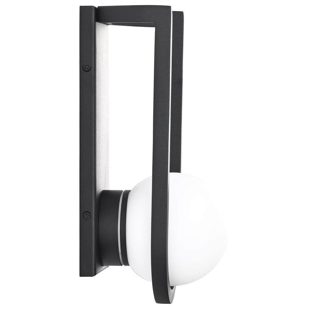 The Cradle LED medium wall lantern makes a stylish, unique impression on a home's exterior with its contemporary-modern design. The long scoop saddles a perfect orb of opal-white glass that houses an integrated LED light source. At only 6 watts, the fi