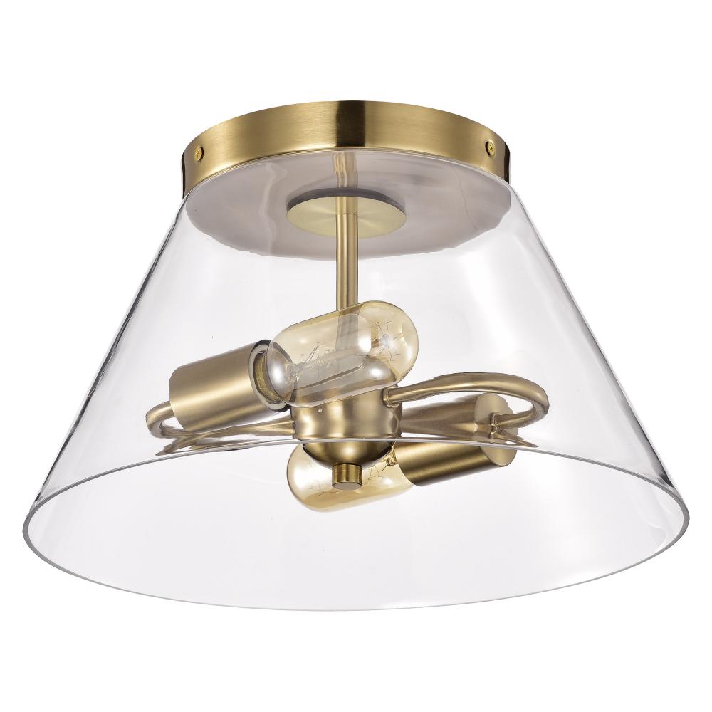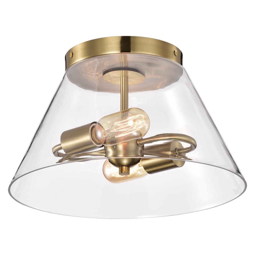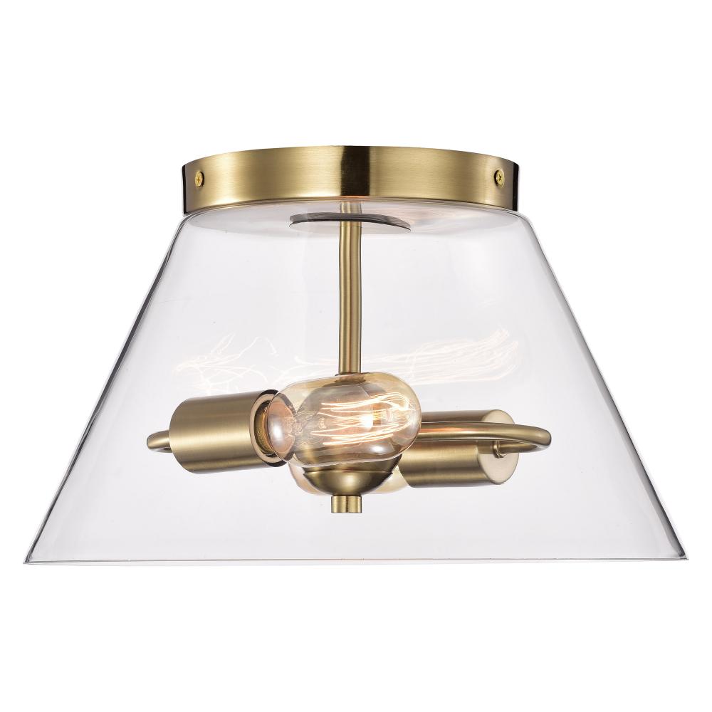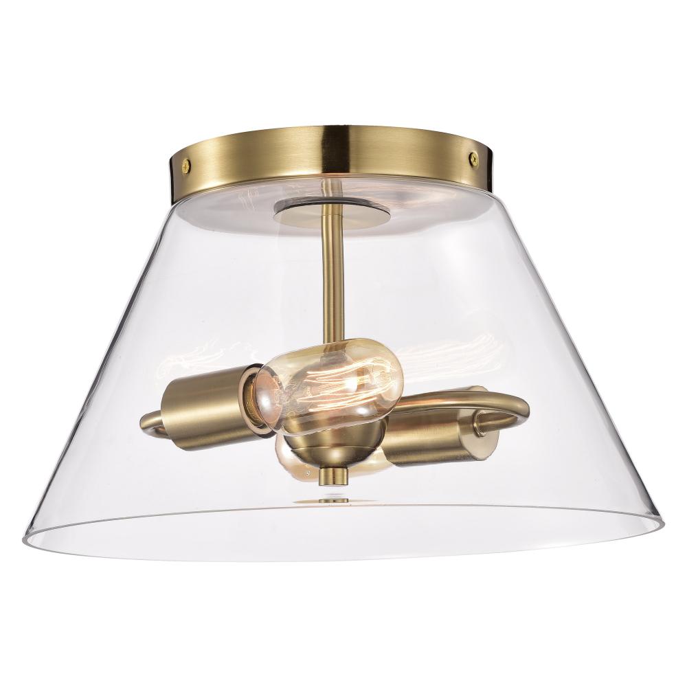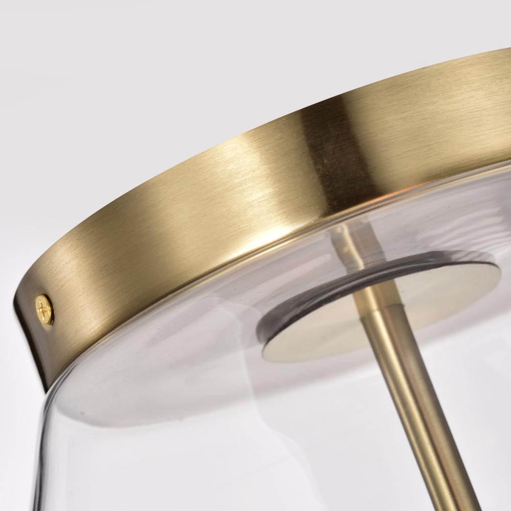 With subtle detailing, the Dover small flush mount is graceful yet unassuming. The simple clear glass shade features trim finished in vintage brass to match the fixture's body. Place over a table in an eat-in kitchen, or bring added light to a dark hal