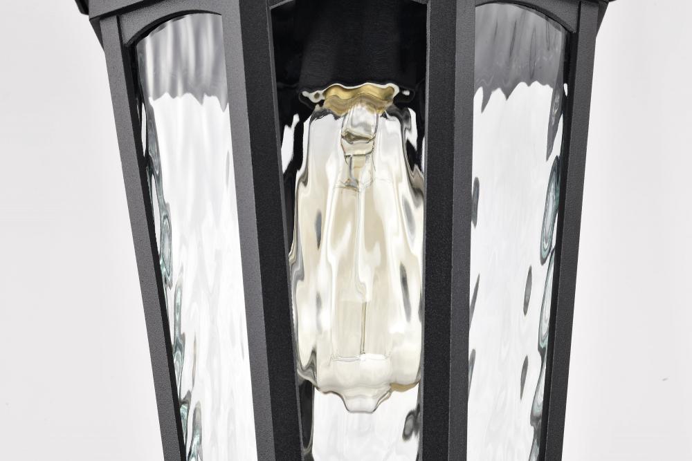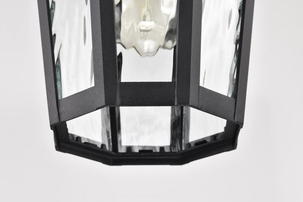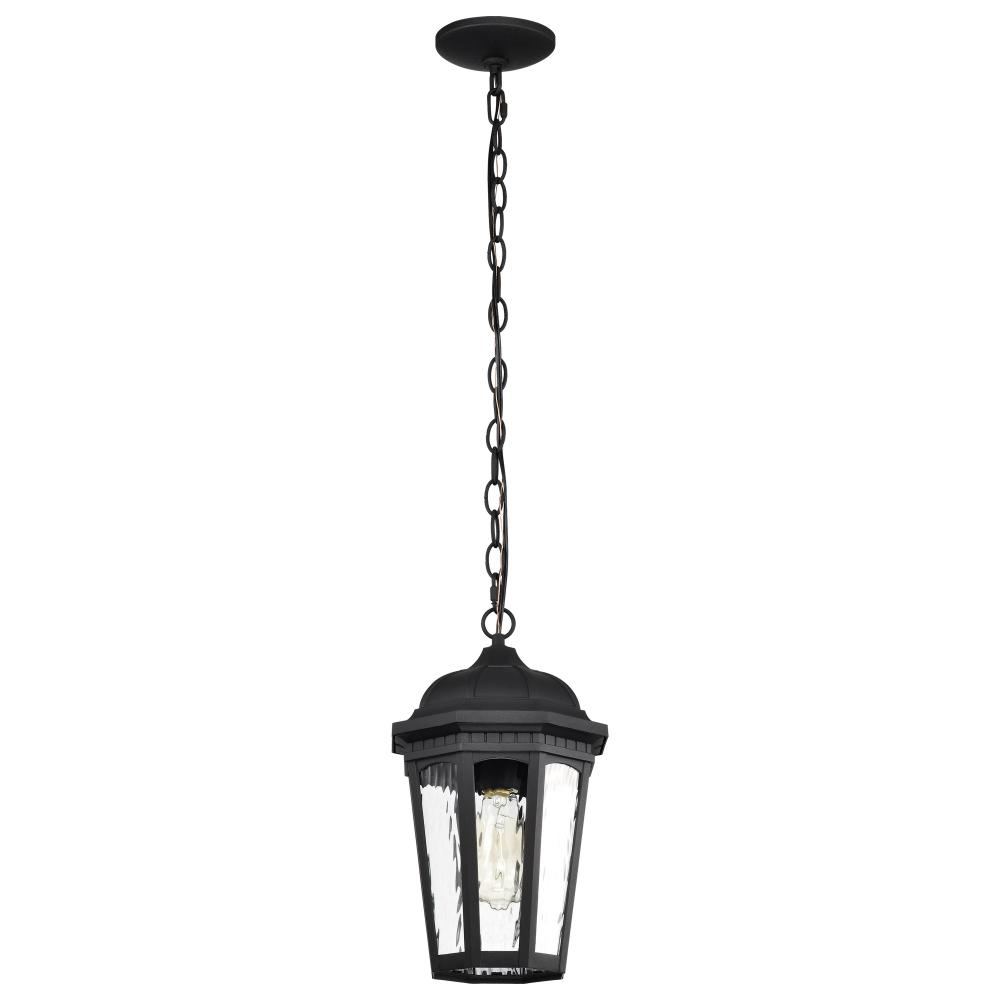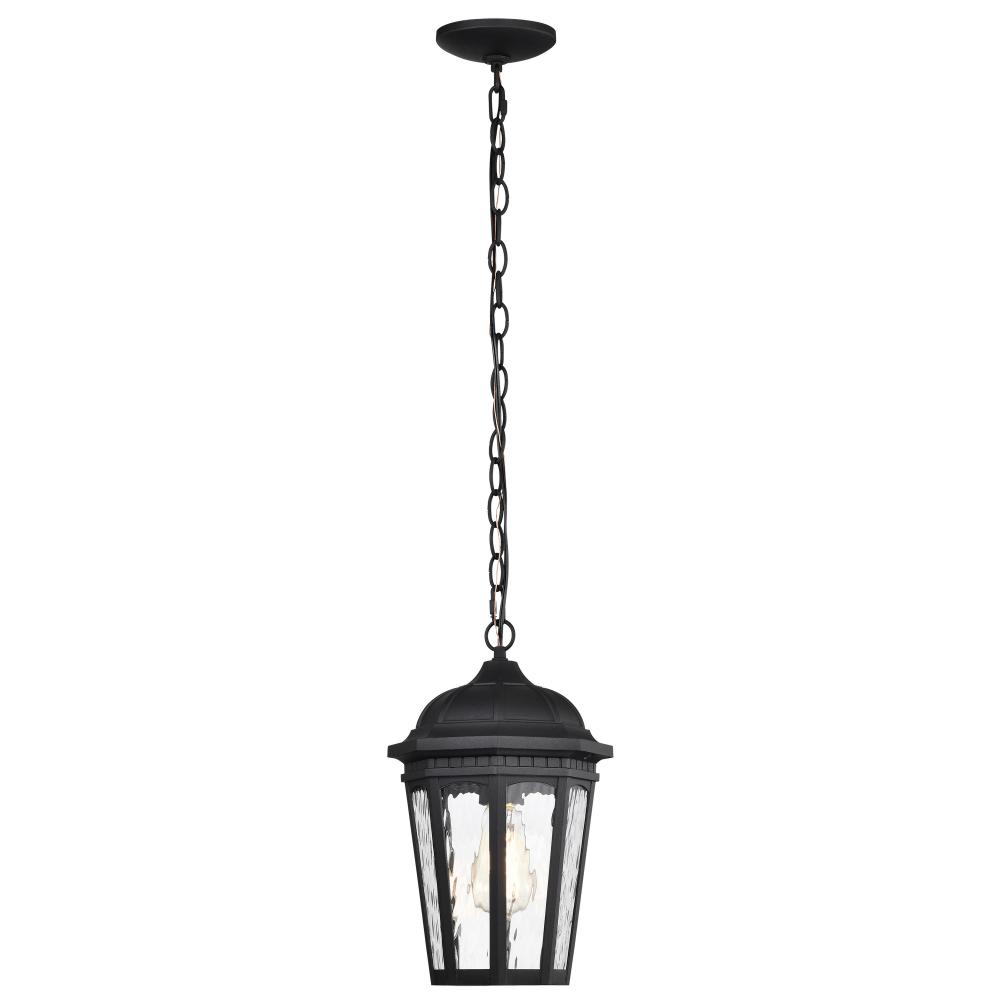 With a hint of provincial design, the East River Outdoor Collection features old-world charm combined with today's style. The rippling, clear water glass of the 60-5944 hanging light dances in the light, and is encased in a beautifully designed fixture