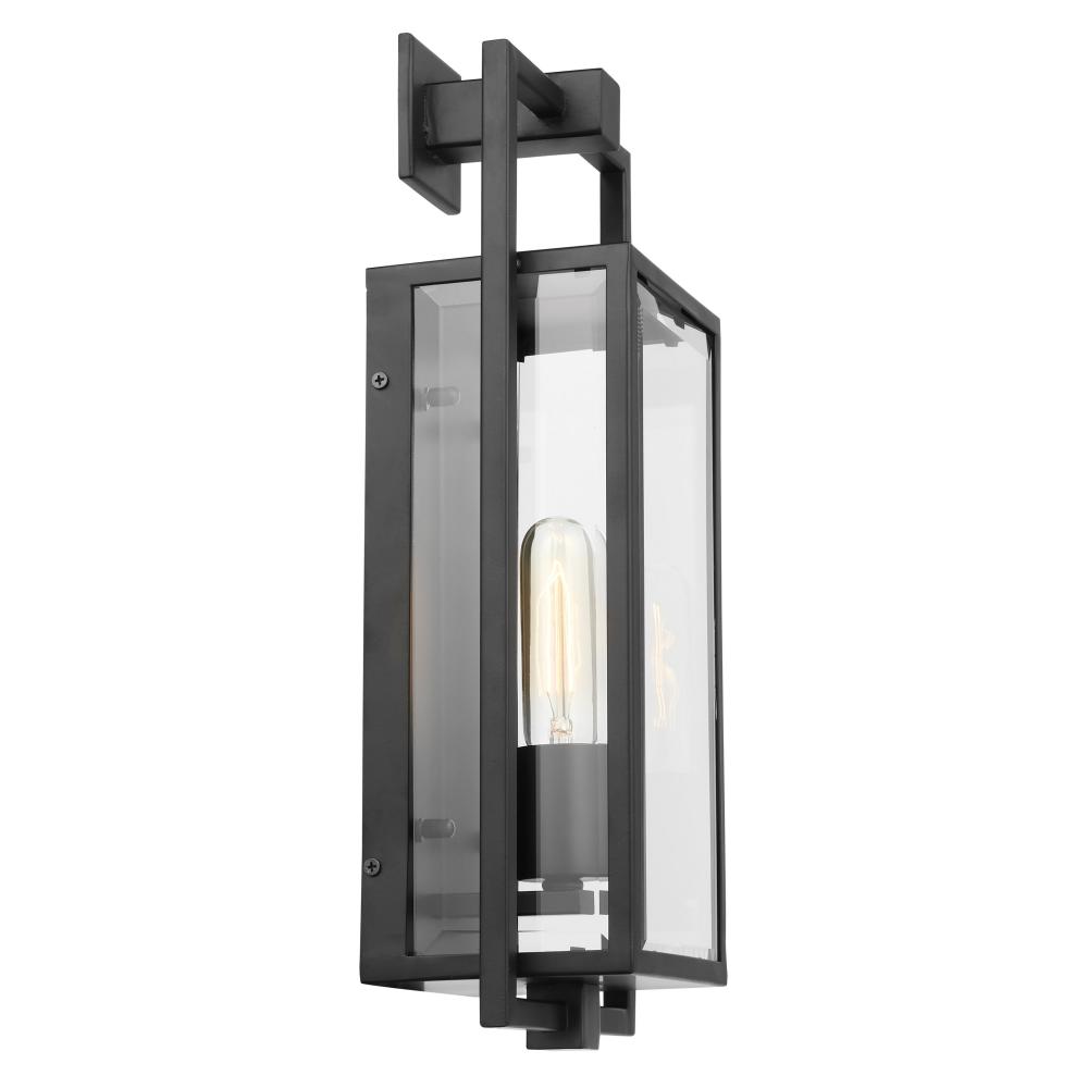 With great attention to detail and superb styling, the Exhibit 60-7544 medium outdoor wall lantern is the ideal solution for your outdoor lighting needs. The floating rectangular frame and box are finished in matte black to complement existing finishes and