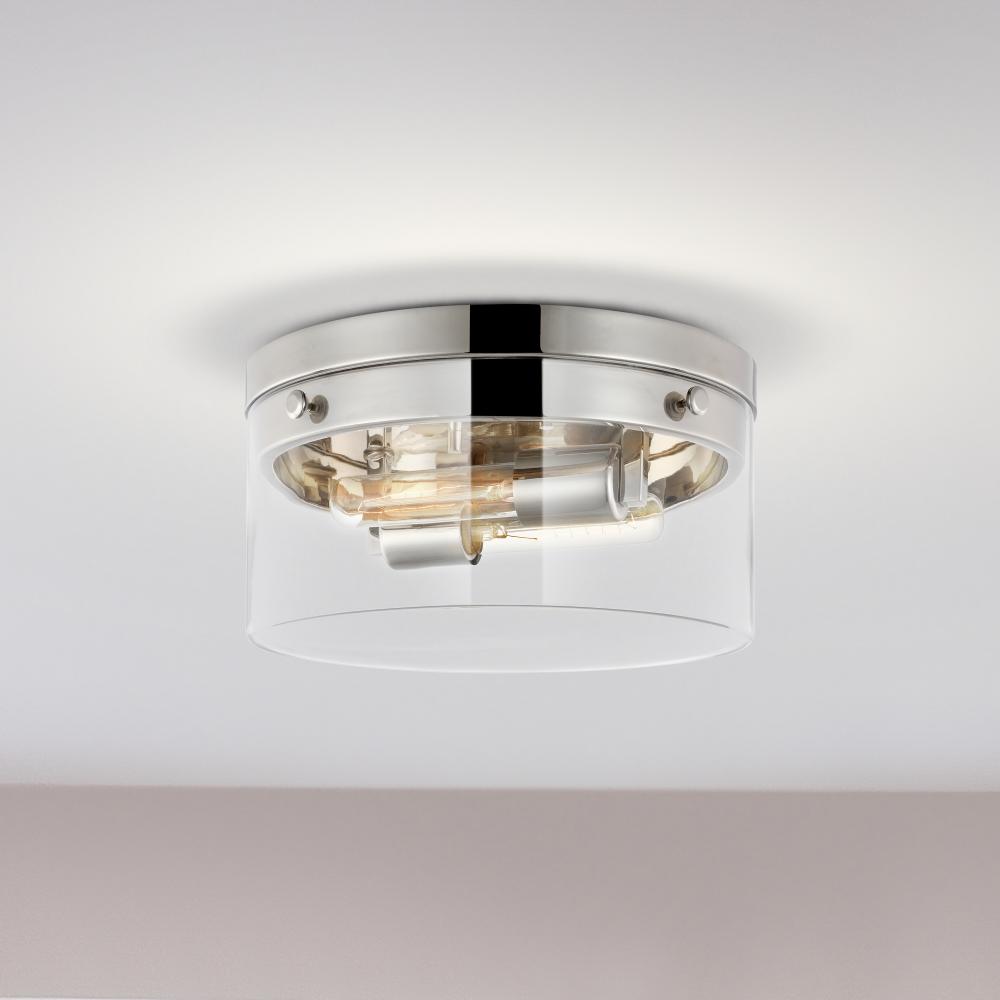 The blend of styles (modern, industrial and chic) is incorporated beautifully into the design of the Intersection 60-7636 small flush mount. The clear glass shade showcases vintage filament bulbs for a touch of nostalgia. The sleek, mirror-like, polished n