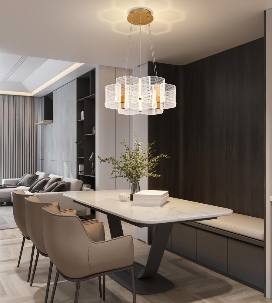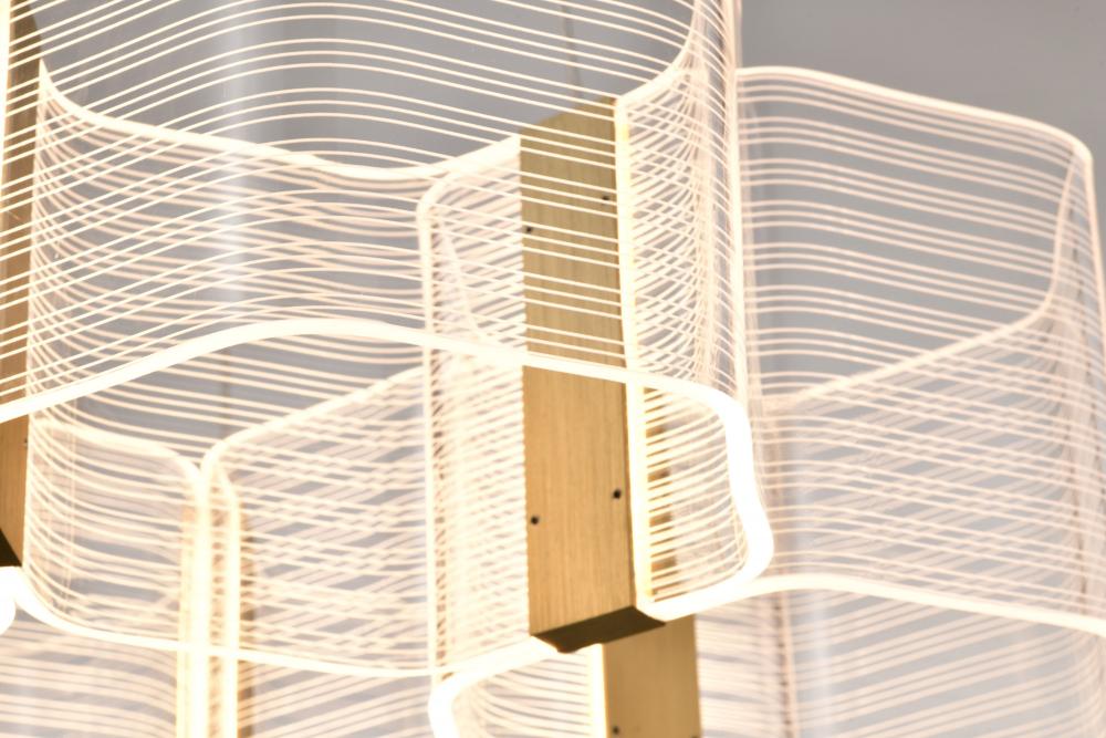Unveil the art of Modern design with the Kenzo 62-2403 LED chandelier, where bold geometric styling meets sculptural elegance. The parallel lines create a dynamic visual effect, blending symmetry with artistry for a look that captivates. Edge-lit acrylic s