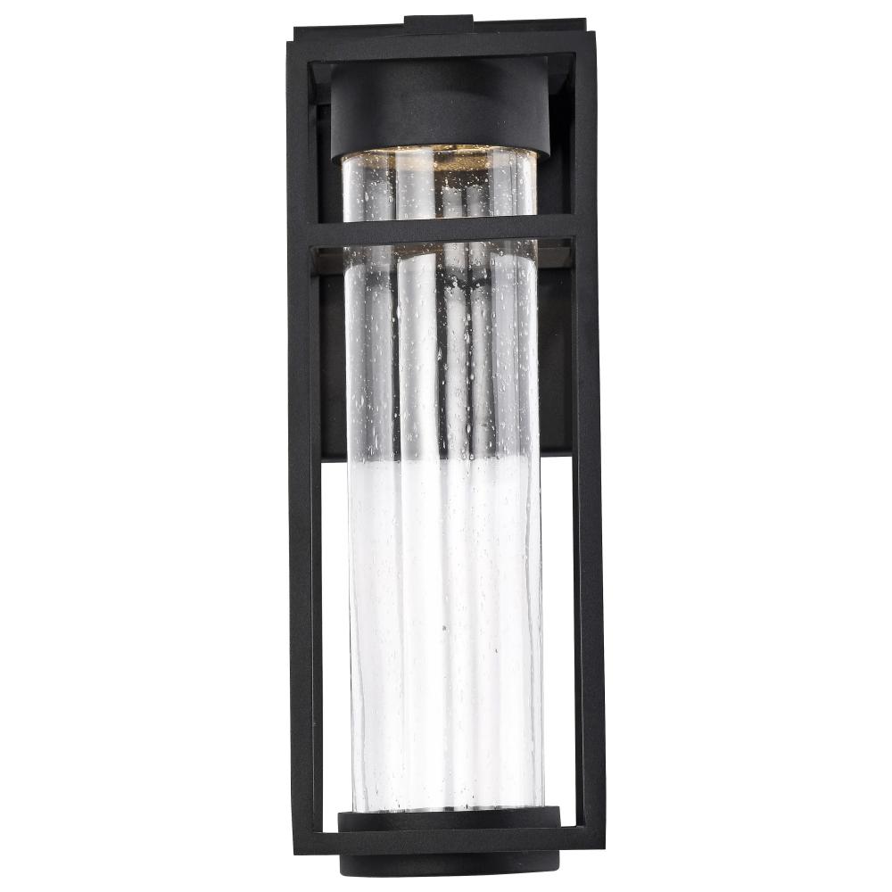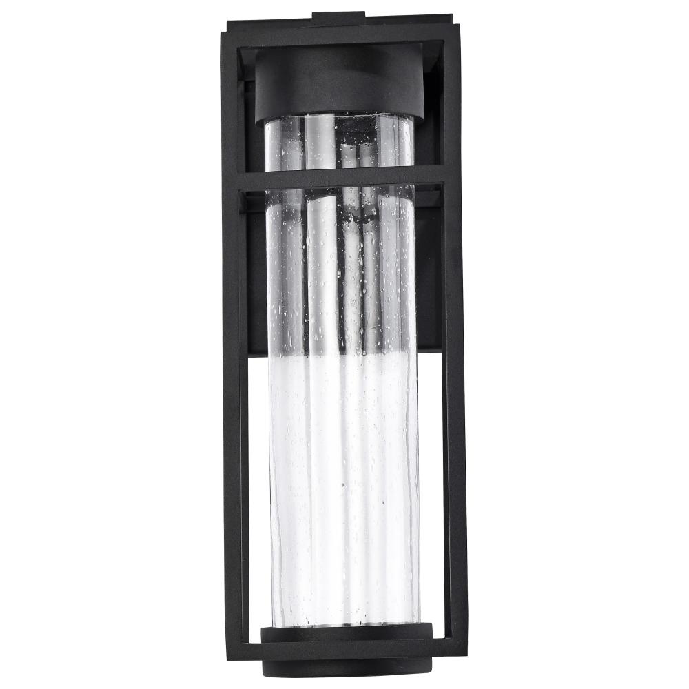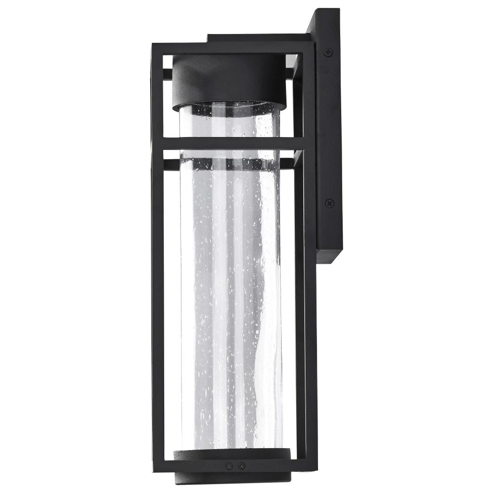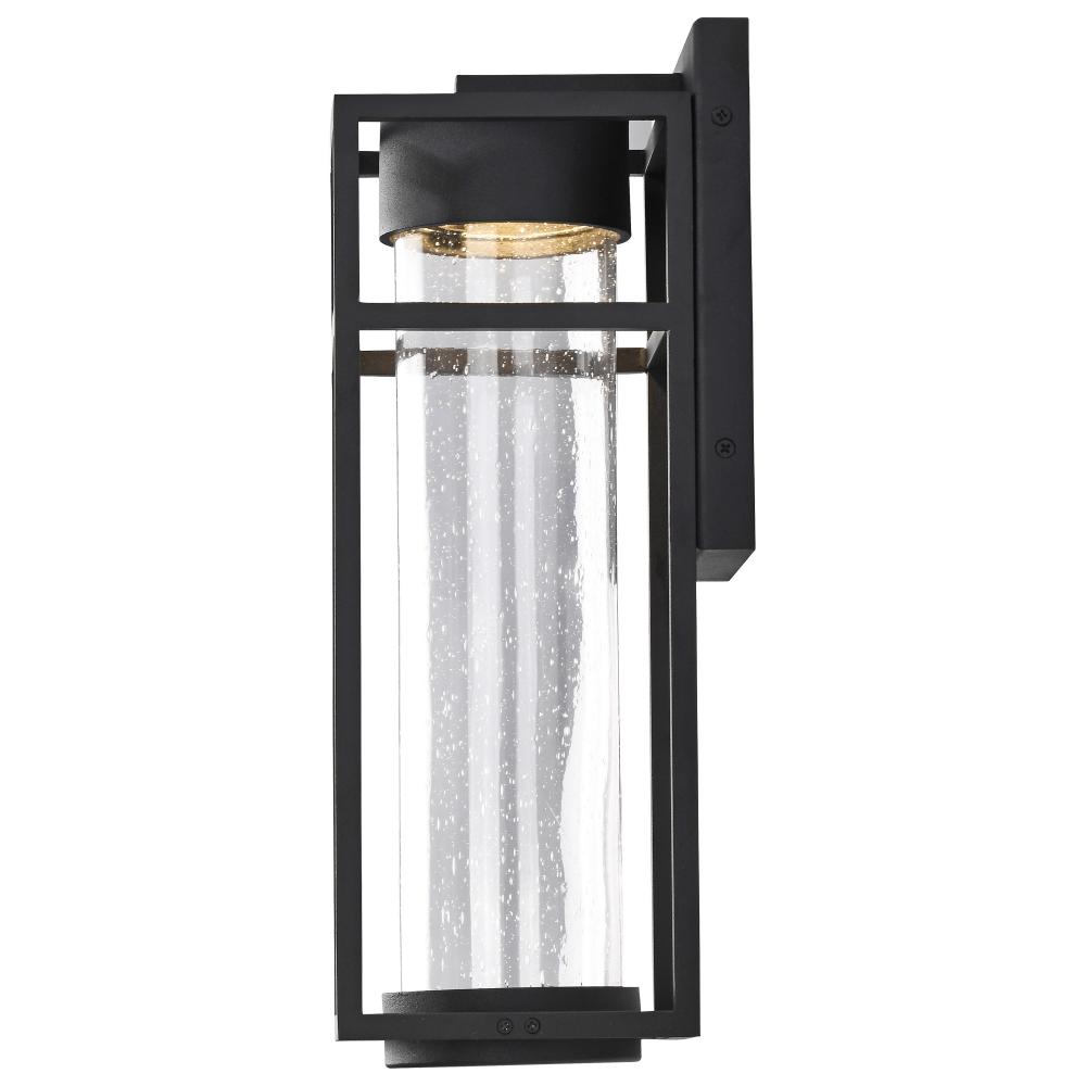 The Ledges 62-1612 LED medium outdoor wall lantern blends a simplistic design with great style. The rectangular framework of the fixture is finished in matte black and highlights the cylindrical clear seeded glass housing the integrated LED module. Perfect