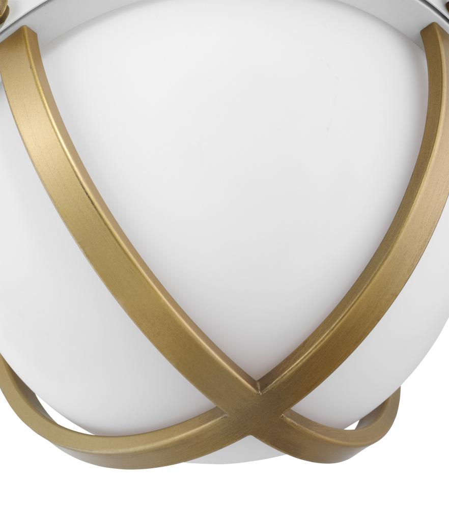 The striking Lincoln 60-7663 semi-flush mount was inspired by an armillary sphere, consisting of a framework of elegant rings. Broad, circular bands surround the orb, and knob details in a brass hue enhance the opal glass and matte white finish for a promi