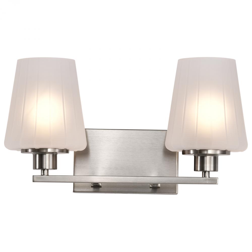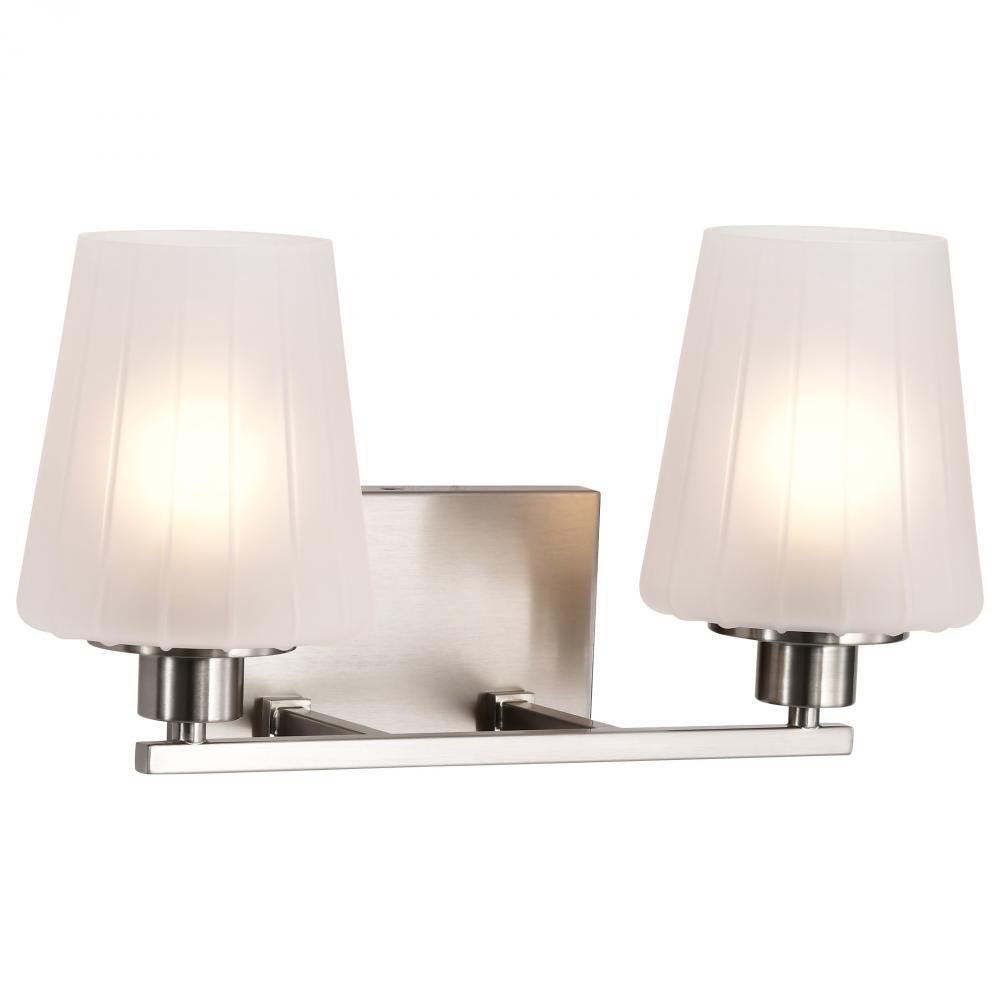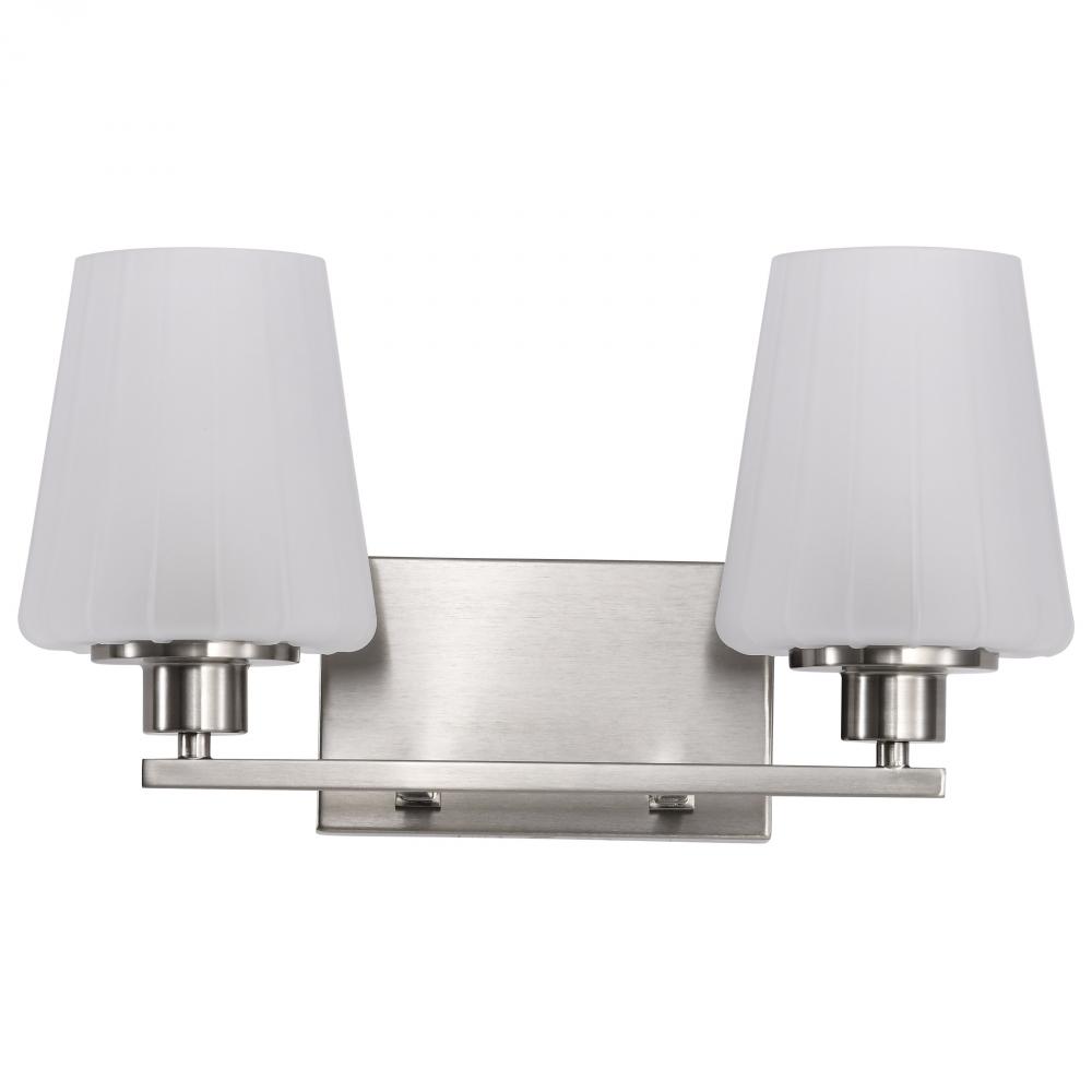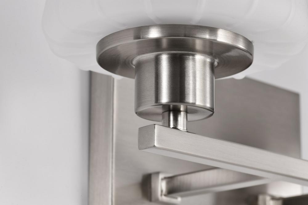 Embrace the classic elegance of the Lune 60-8222 two light vanity fixture, where updated Mid-Century Modern design meets today's sophisticated style. Featuring graceful lines and thoughtful details, it reimagines retro aesthetics for the contemporary h