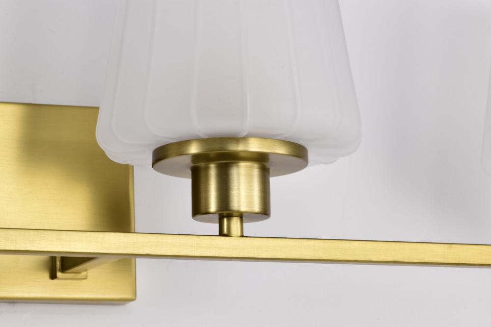 Lune; 4 Light Vanity; Vintage Brass Finish; Etched White Glass