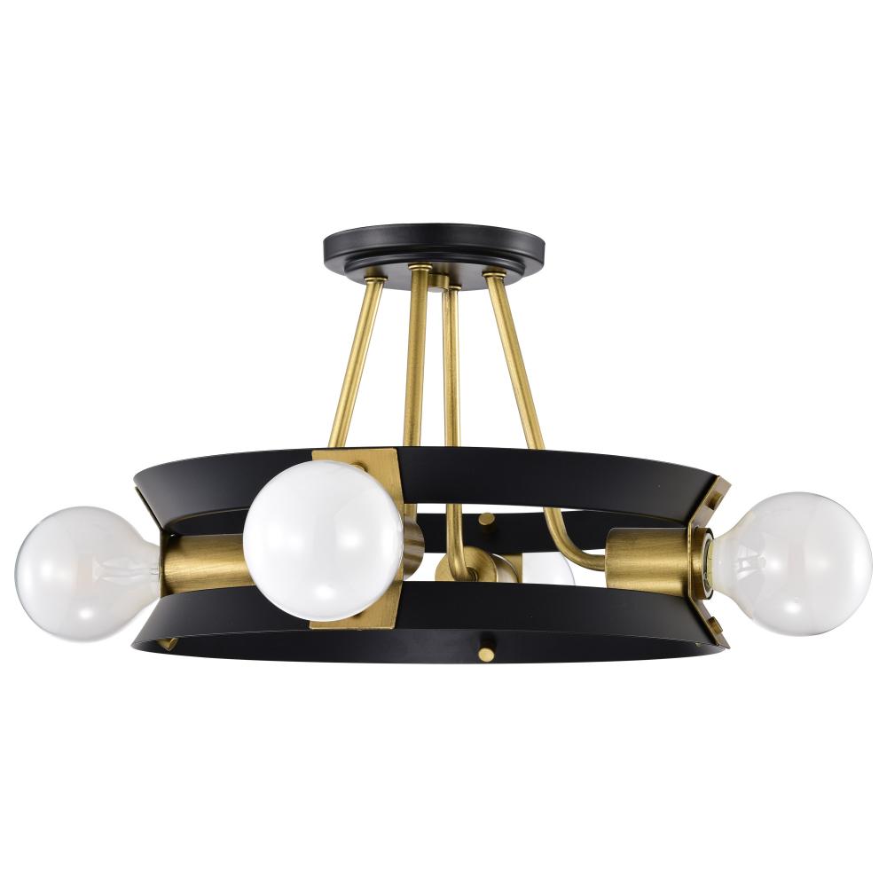 Eclectic, contemporary, unique, just a few words to describe the Marsden 60-7866 four light semi-flush mount. The matte black finish is the perfect backdrop to the natural brass accents, blending form and function beautifully. A fantastic semi-flush mount