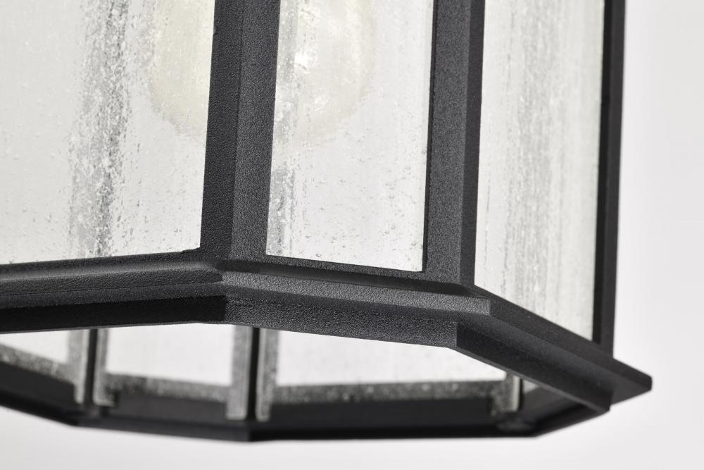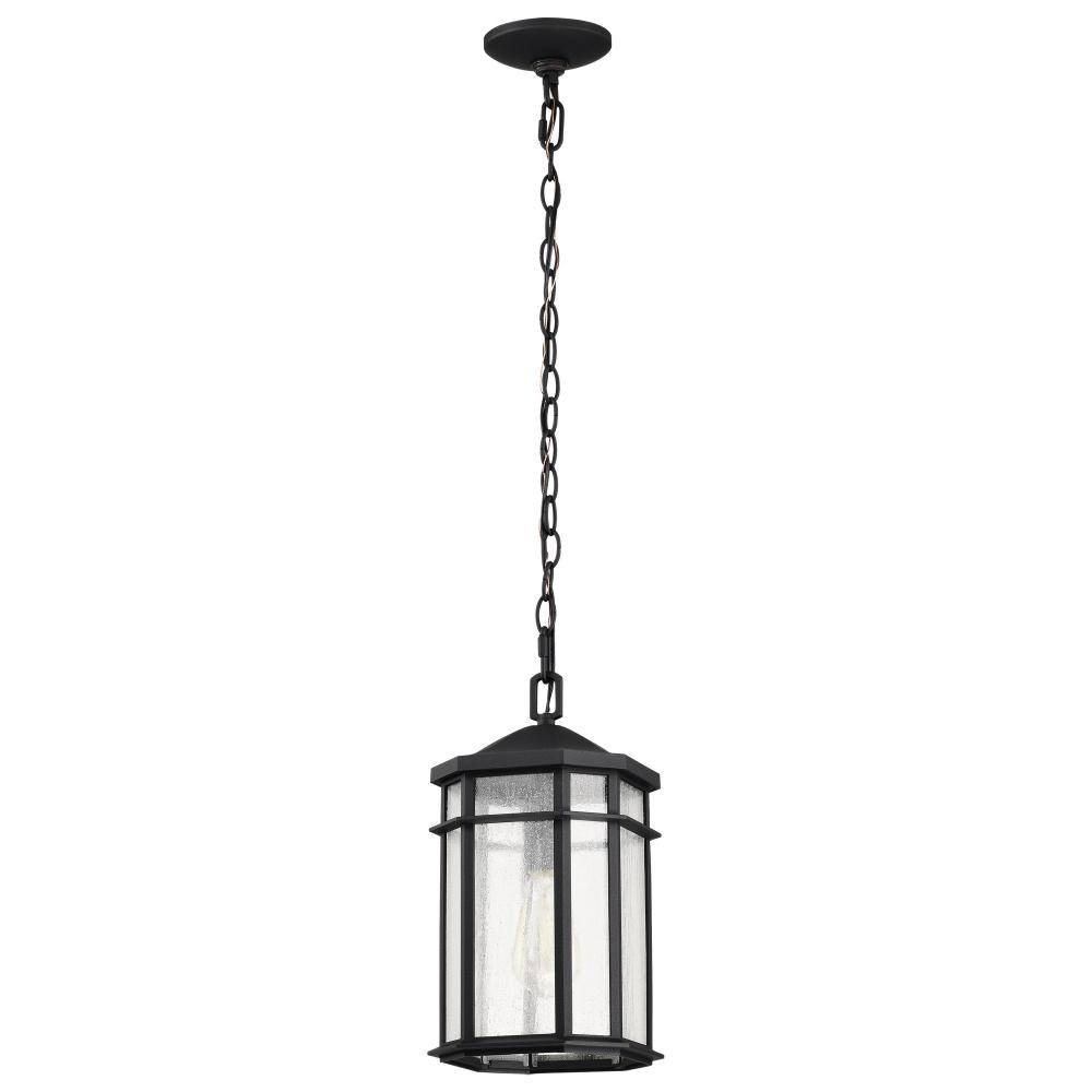 Raiden Collection Outdoor 14.5 inch Hanging Light; Matte Black Finish with Clear Seedy Glass