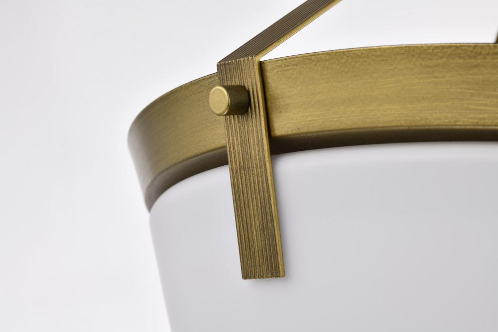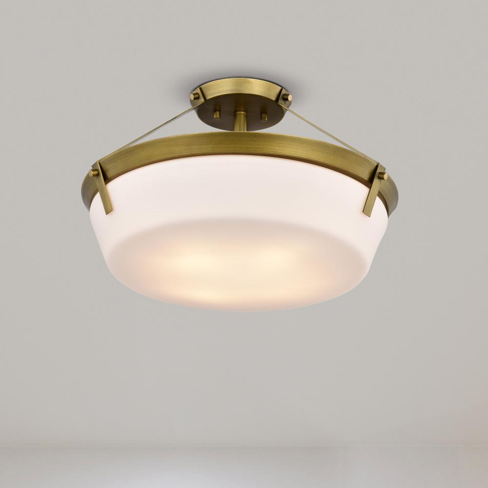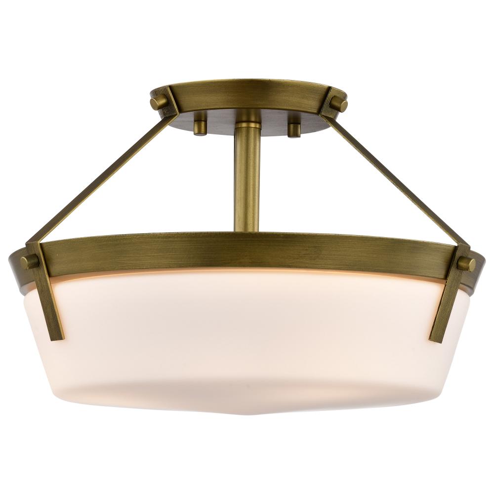 Rowen 3 Light Semi Flush; Natural Brass Finish; Etched White Glass