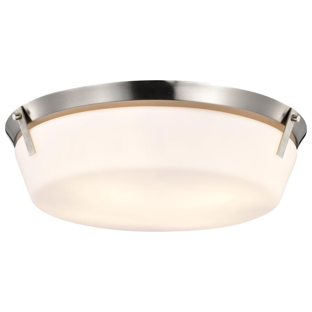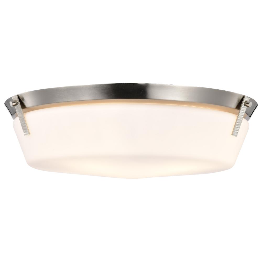 The Rowen Collection is a versatile series of flush mounts that exude elegance and sophistication. The brushed nickel provides a chic, inviting finish, and the etched white glass diffuses the light to create a soft and ambient glow. Rowen suits a variety o