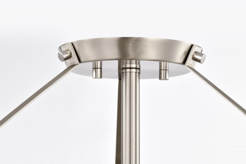 Rowen 4 Light Semi Flush; Brushed Nickel Finish; Etched White Glass