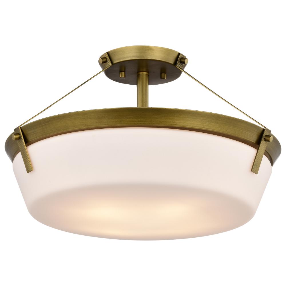 Rowen 4 Light Semi Flush; Natural Brass Finish; Etched White Glass