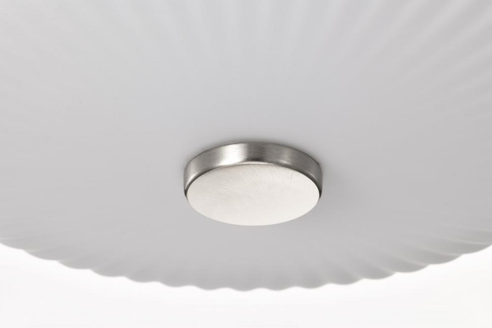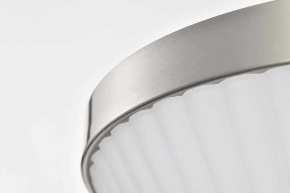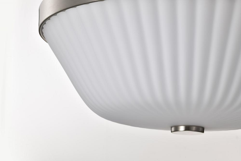 Indulge in the glamour of the Royale 60-8735 three light flush mount, where sleek Art Deco silhouettes meet modern refinement. The satin white pleated glass adds texture and sophistication, diffusing light with a soft, radiant glow. Finished in brushed nic