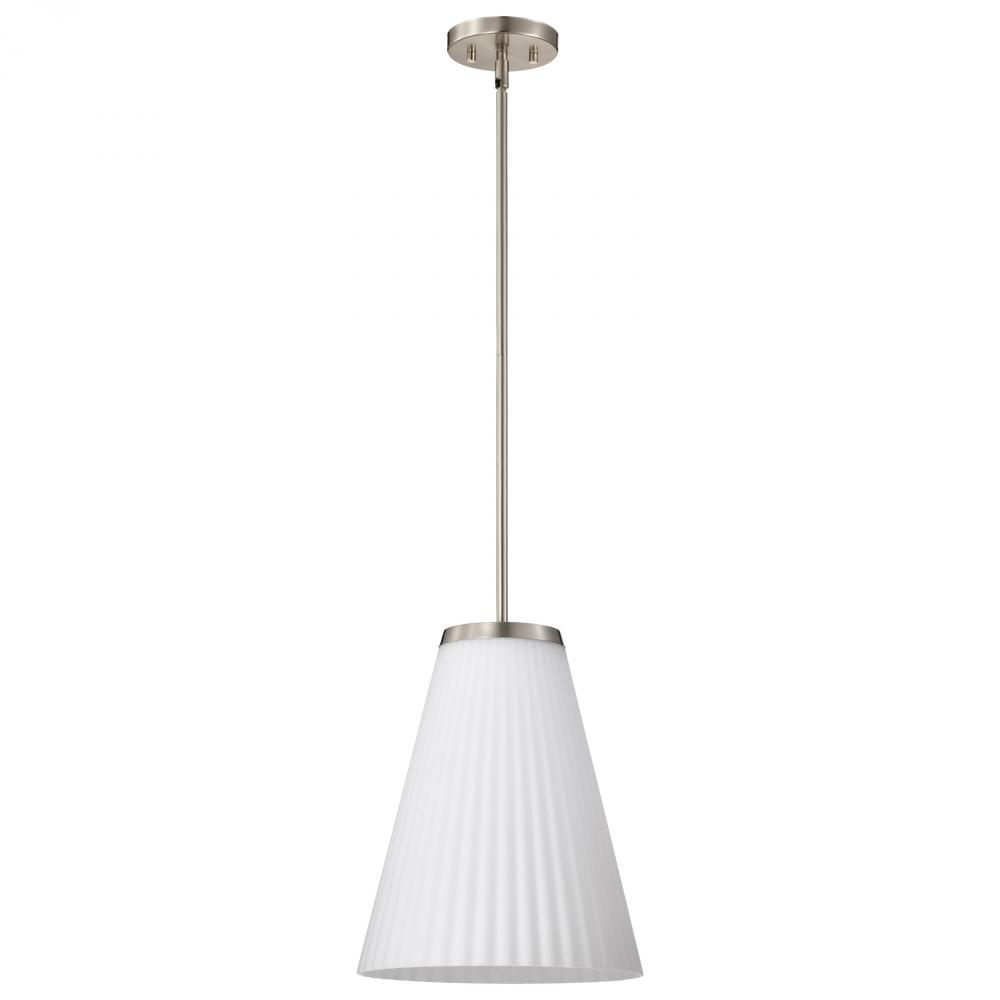 Indulge in the glamour of the Royale 60-8738 one light large pendant, where sleek Art Deco silhouettes meet modern refinement. The satin white pleated glass adds texture and sophistication, diffusing light with a soft, radiant glow. Finished in brushed nic