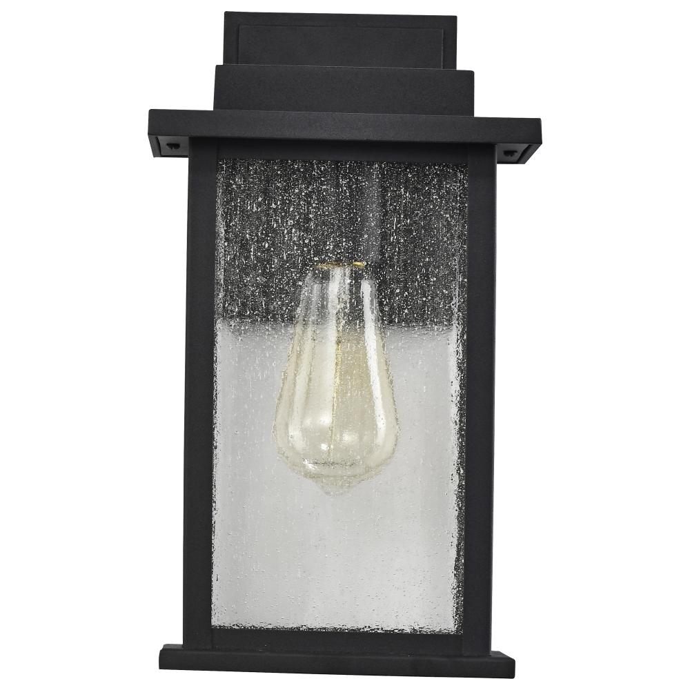 The Sullivan 60-7375 outdoor medium wall lantern combines clean lines and minimal details in one versatile design. The seeded clear glass provides subtle diffusion of light and is perfect for lighting the way into your home. The black finish works well wit