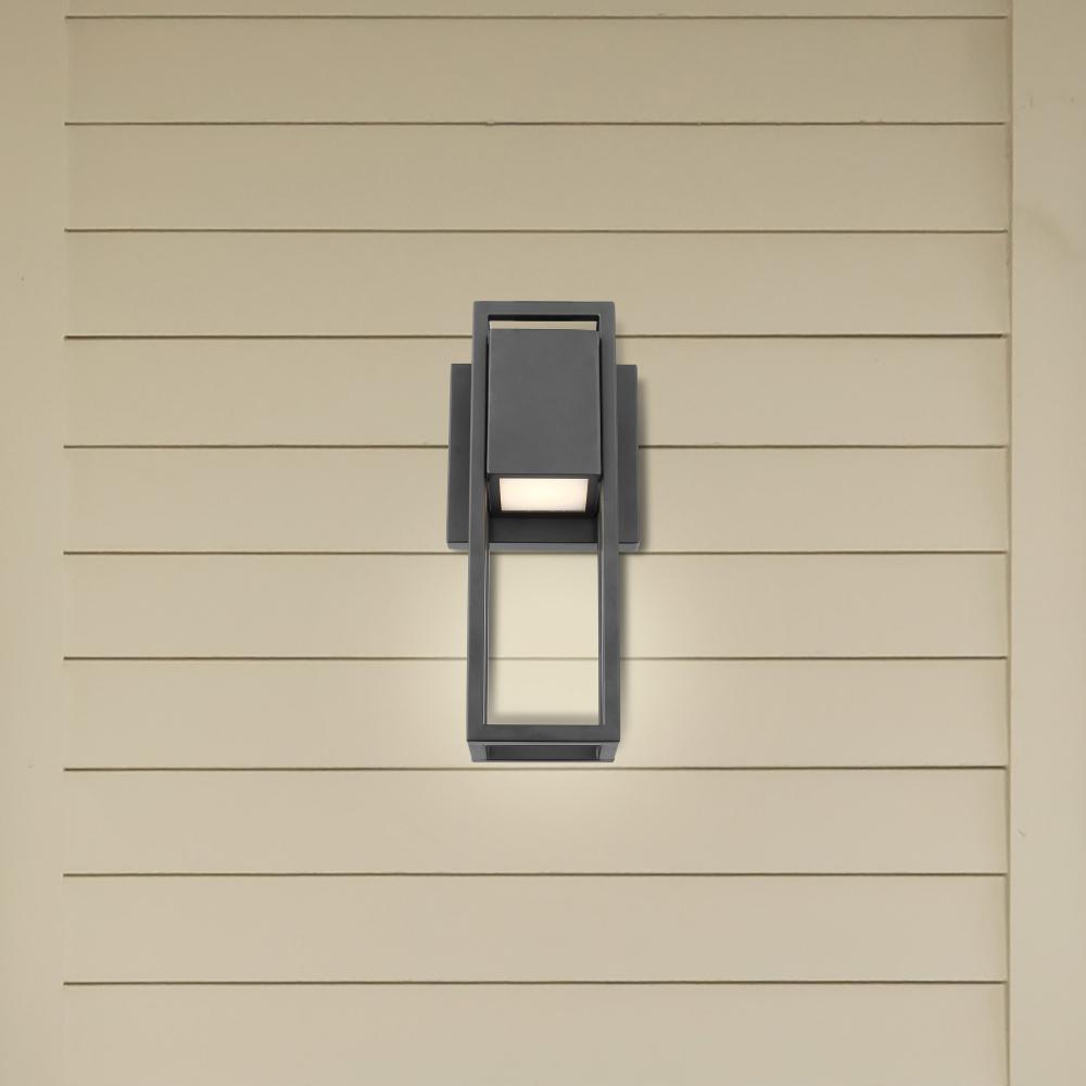 The Supreme LED small outdoor wall lantern suits modern and contemporary styling perfectly. The integrated LED illuminates downward, adding visual interest to the design with the clean lines of the rectangular frame. A versatile matte black finish compleme