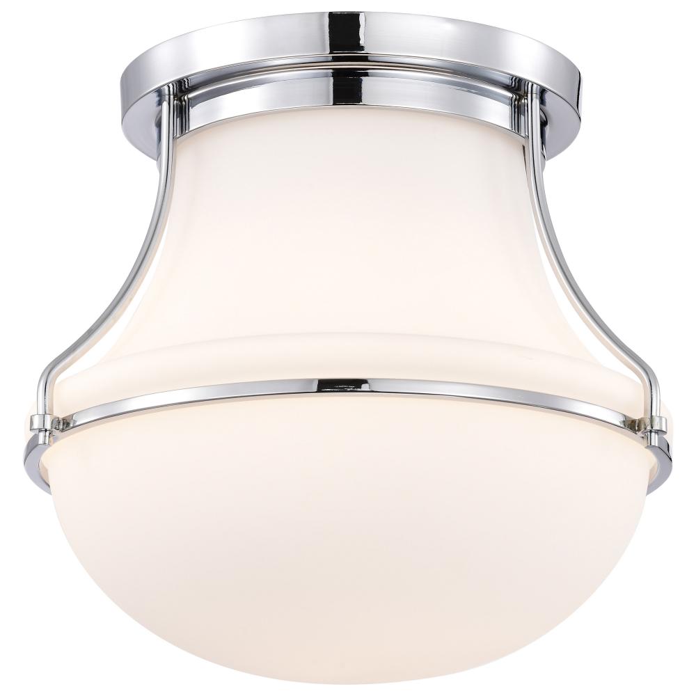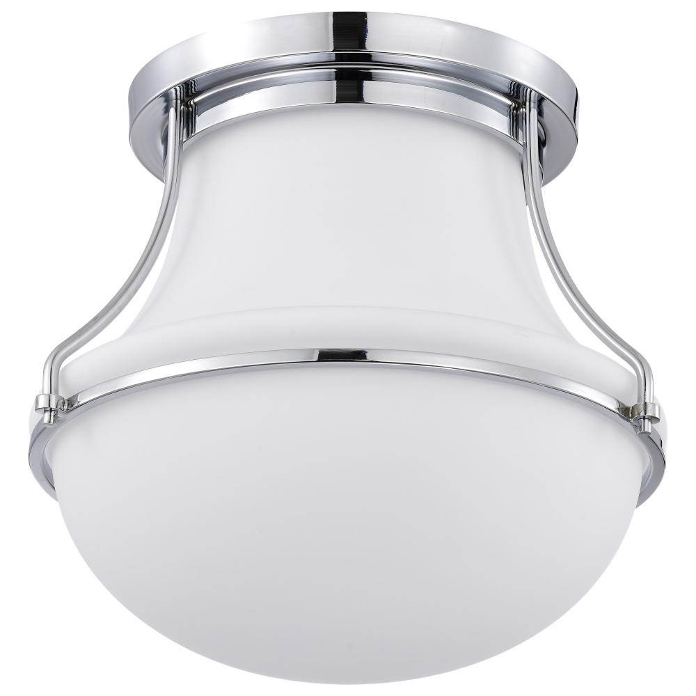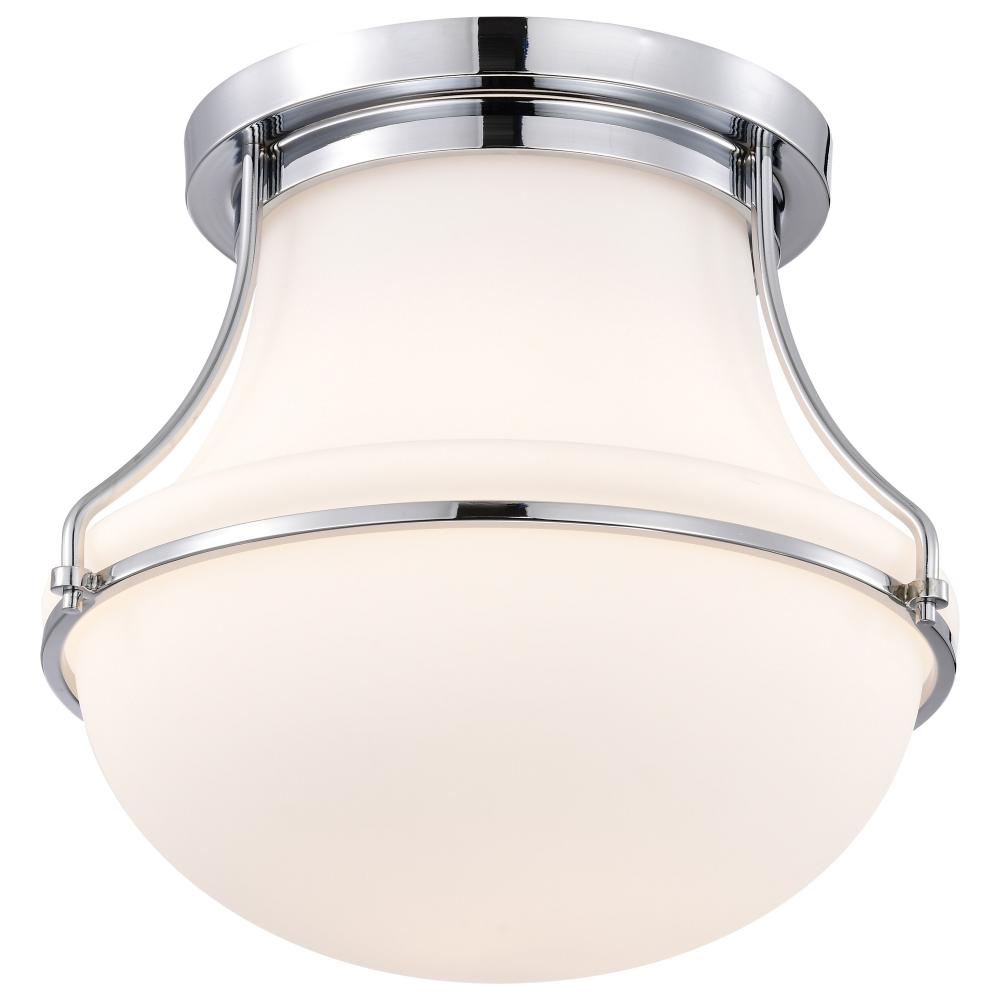 Evoke a sense of tranquility with the Valdora 60-7871 medium flush mount, which pays homage to classic, luminous illumination. A schoolhouse-inspired shade floats in a chic finish of polished nickel, perfectly complimenting the fixture base and white hue o