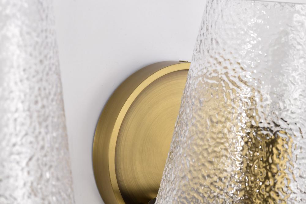 Valentine; 3 Light Vanity; Vintage Brass Finish; Hammered Glass
