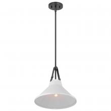 Zelda; 1 Light Pendant; Medium Base; 60 Watt; Black Finish; White Metal Shade; Faux Leather Straps