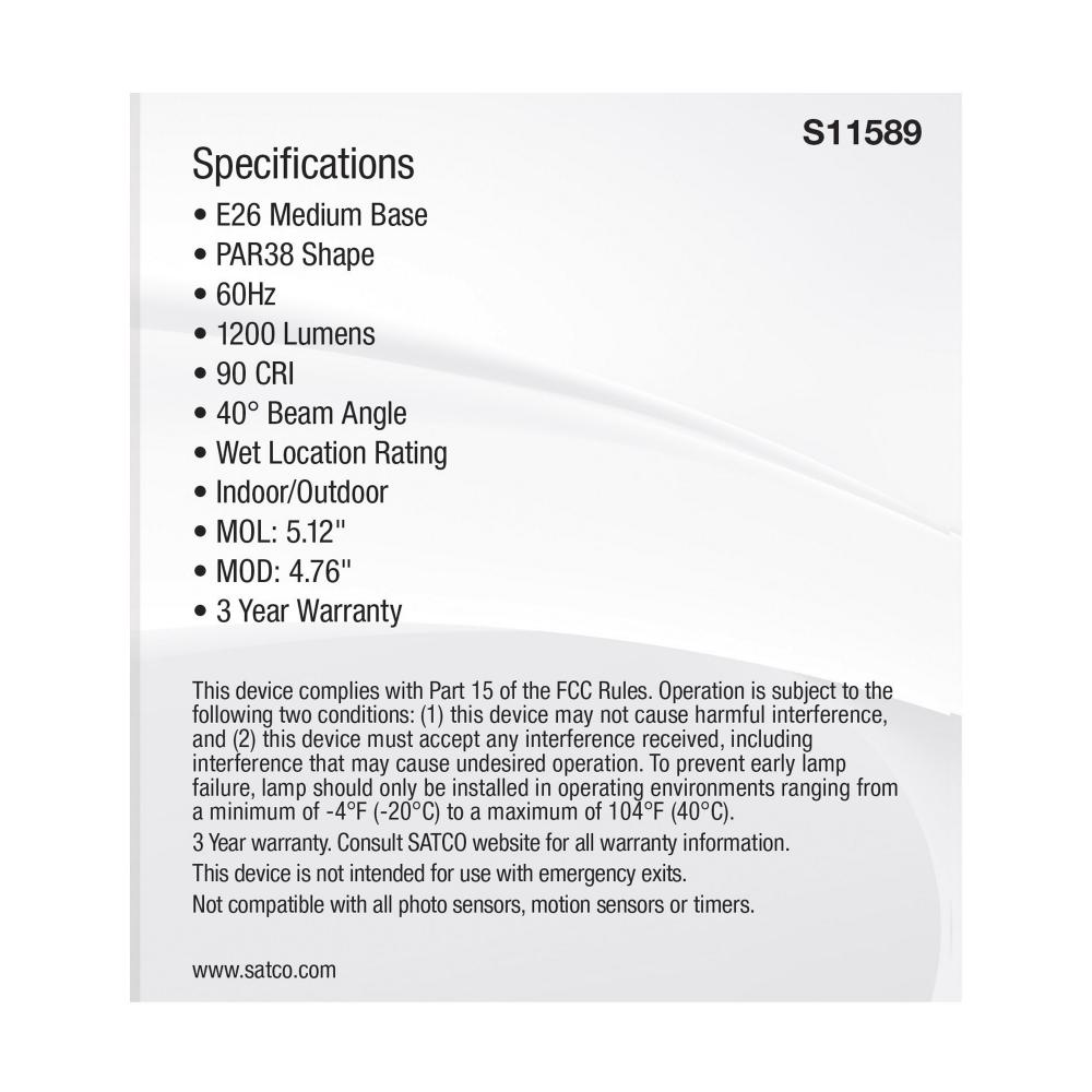 SATCO NUVO's LED PAR Lamps are the perfect solution for recessed and flood lighting. Offered in PAR20, PAR30, PAR30 Long Neck and PAR38, choose 25, 40 or 60 degree beam angles for the best illumination for your application. All models include a unique