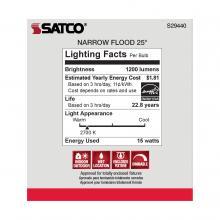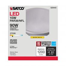 Satco's S29440 LED 15-watt, PAR38 lamp maintains the familiar look of the Halogen PAR and Gen1 LED lamps they replace; but at 90 CRI and a higher lumens per watt ratio, it delivers superior light and improved efficiency. Designed for use in track, rece