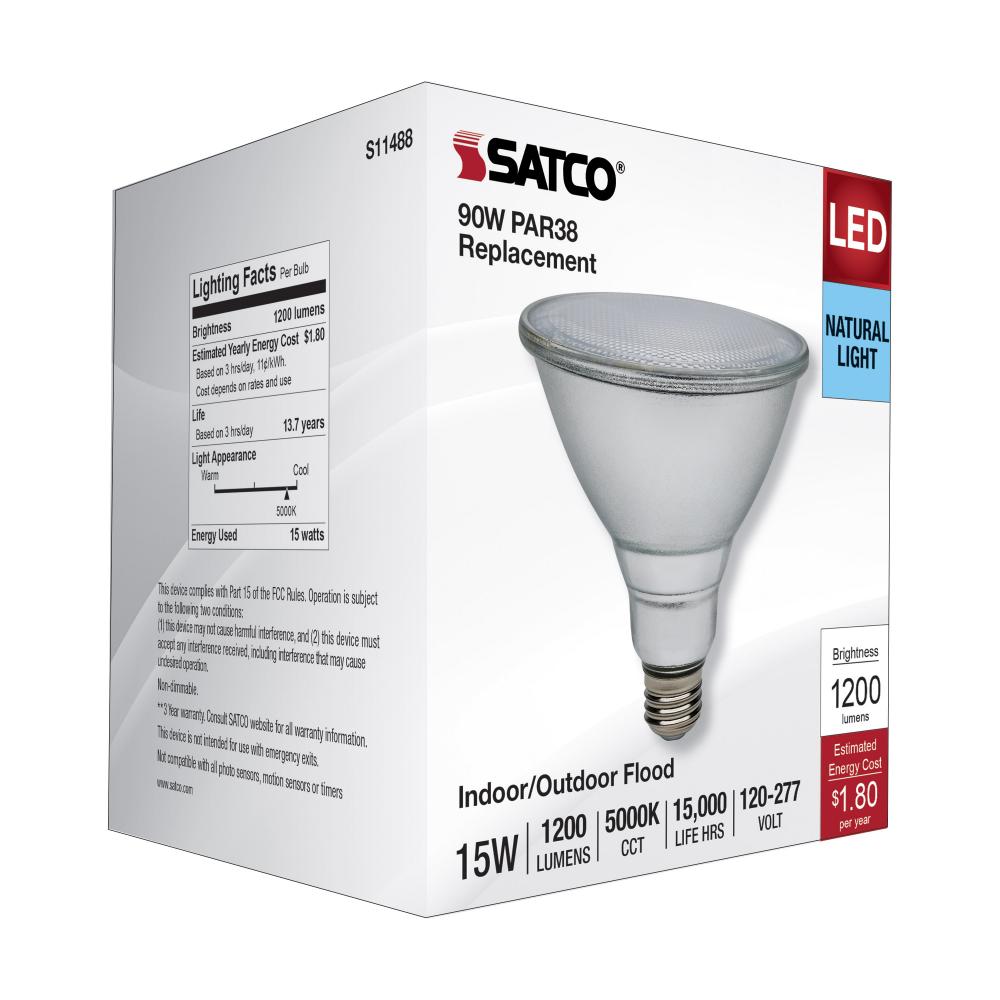 SATCO NUVO's S11488 PAR38 Range Voltage lamp is designed for application in 120V-277V fixtures. With crisp, 90 CRI light output in 5000K, this is an ideal lamp for residential commercial, hospitality, general lighting, recessed downlighting and task li