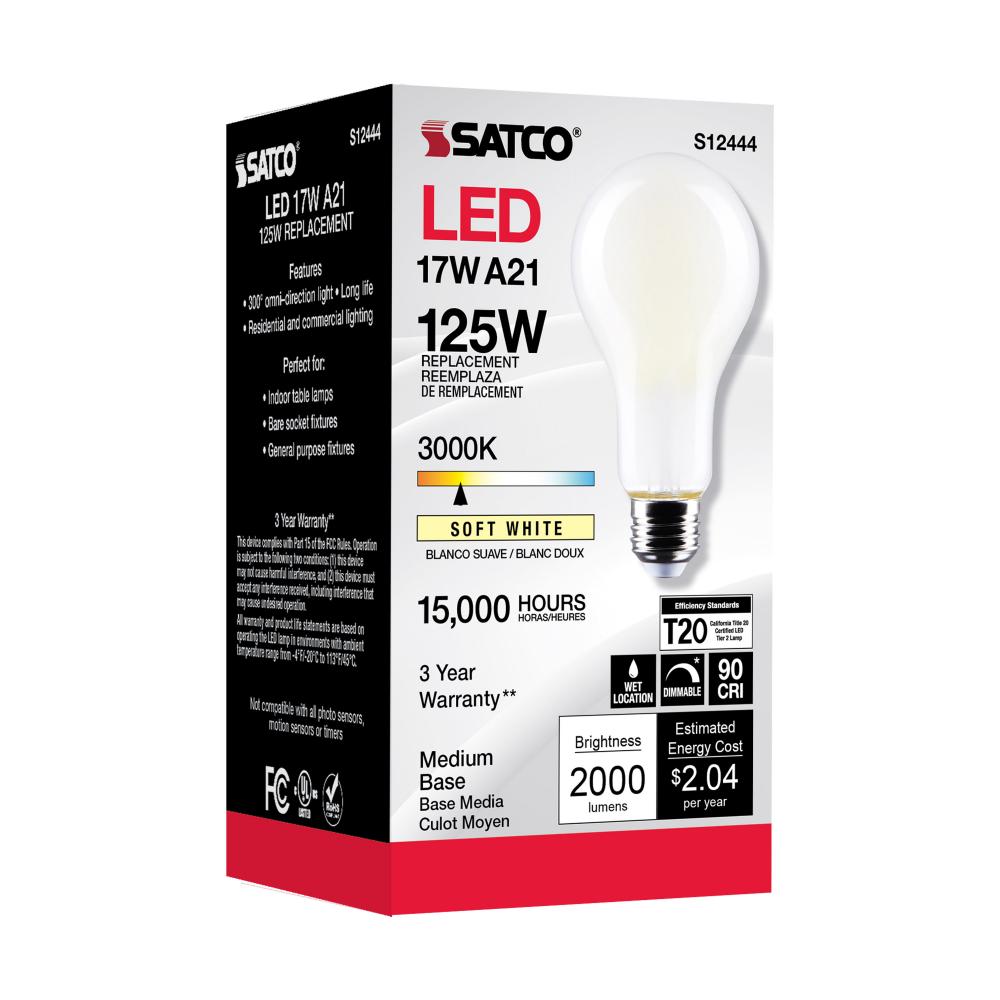Satco's 17-watt LED lamp is traditional, yet contemporary with its sleek finish and energy saving LED technology. Elegantly illuminate any room in the house with this dimmable, frost finished bulb. Sophisticated and modern, this lamp delivers 15,000 ho