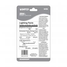 25 Watt T8 Incandescent; Clear; 2500 Average rated hours; 190 Lumens; Intermediate base; 130 Volt; Carded