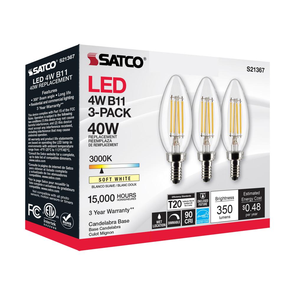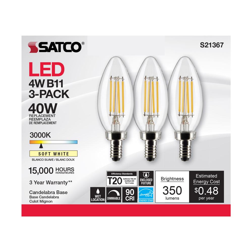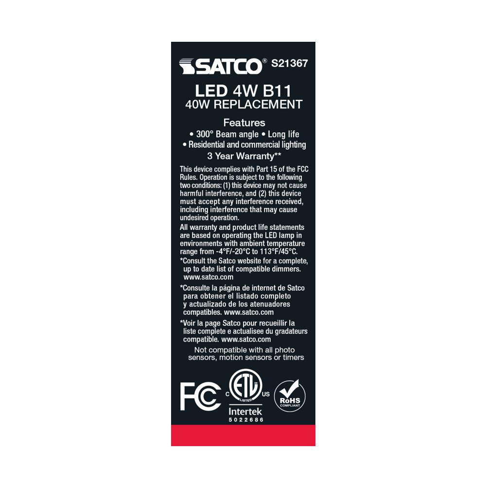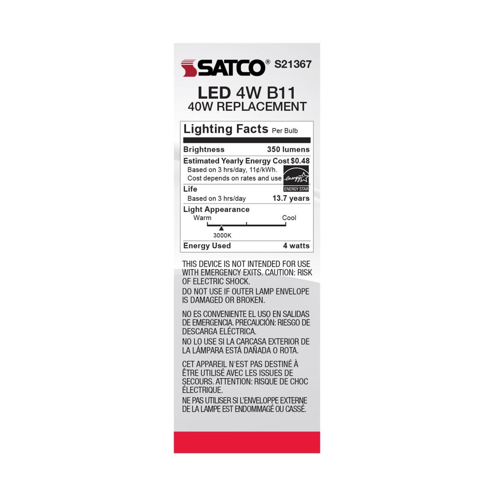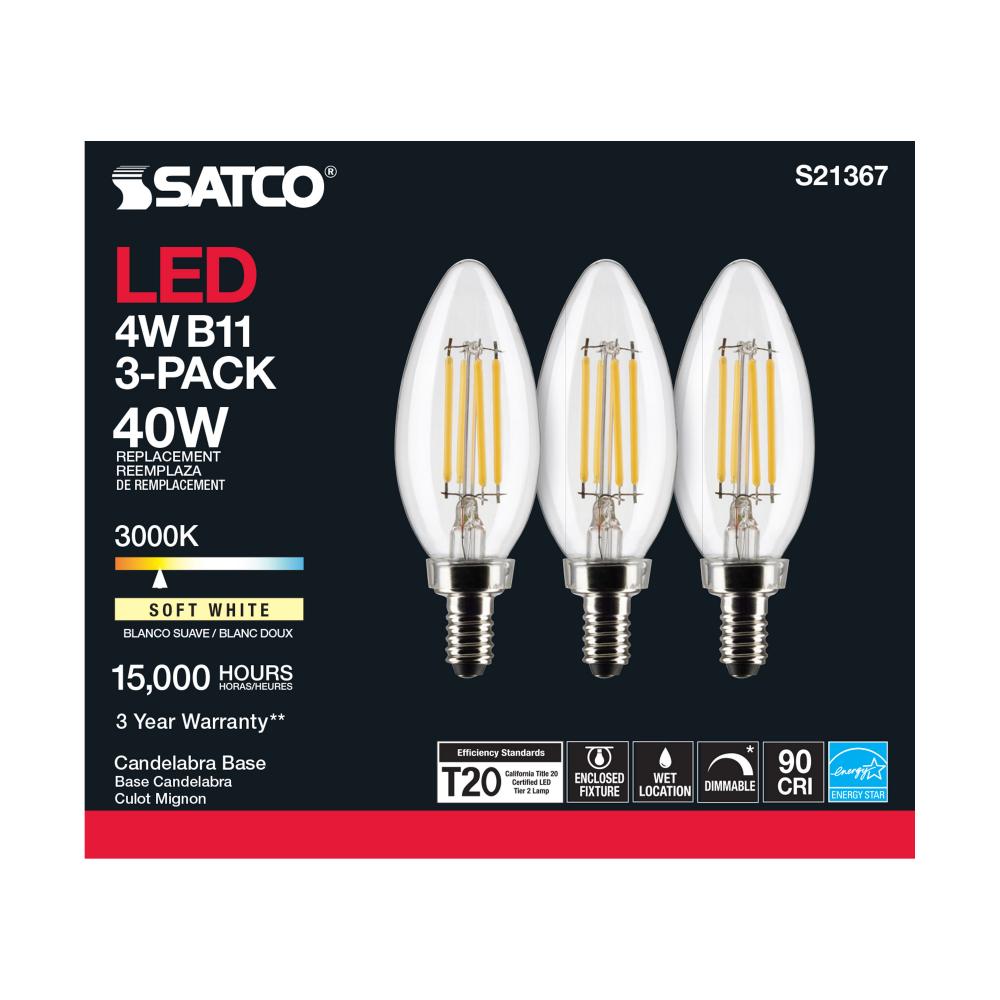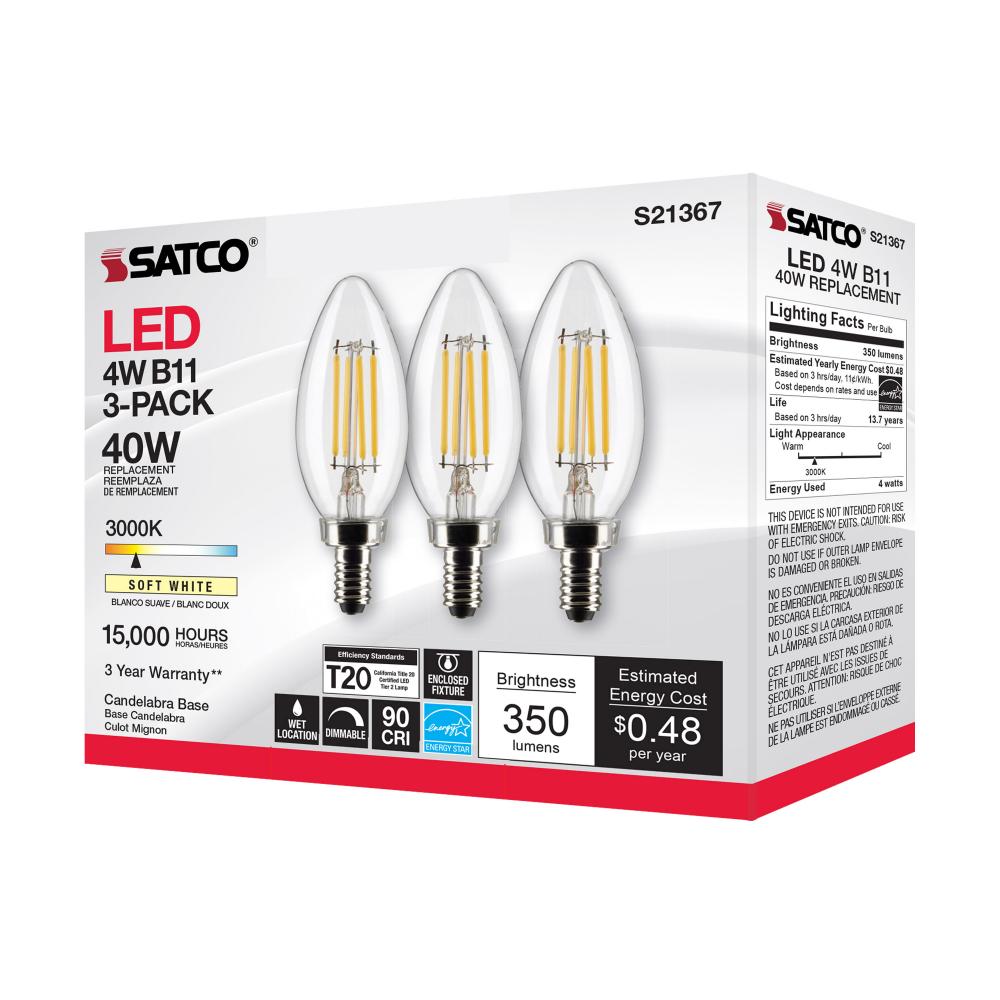 Satco's S21367 4-watt, LED lamp is traditional, yet contemporary with its vintage style and energy saving LED technology. Elegantly illuminate any room in the house with this dimmable, clear bulb. Sophisticated and modern, this lamp delivers 15,000 hou