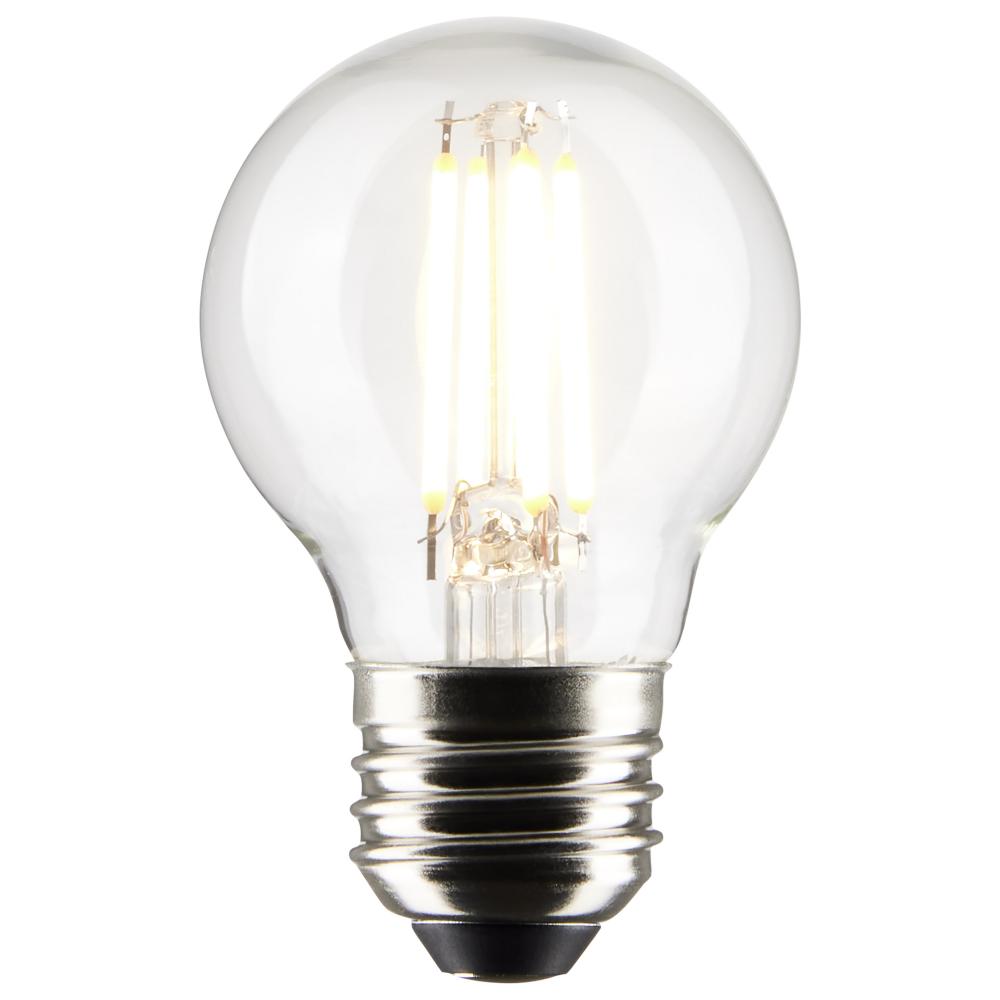 Satco's 4-watt clear, LED G16.5 bulb with a medium base is dimmable and offers warm white light and a 300 degree beam spread. Wet rated for kitchens and bathrooms, the carded 2-pack is suitable for retail display. Elegant and long-lasting, this clear b