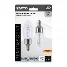 SATCO NUVO's S10523 B11 Reminiscent lamp offers the traditional look of tungsten filament bulbs with the energy savings of LED technology in a convenient 2-pack. The gray coil filaments provide a clean aesthetic, blending in with many current fixture a