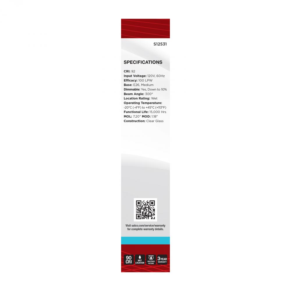 Satco's S12531 5-watt, LED lamp is traditional, yet contemporary with its vintage style and energy saving LED technology. Elegantly illuminate any room in the house with this dimmable, clear bulb. Sophisticated and modern, this lamp delivers 15,000 hou