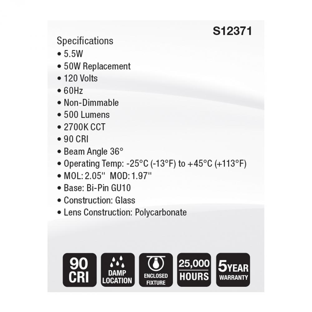 SATCO MR16 lamps are available with GU5.3 and GU10 bases, for versatile lighting solutions in 12V and 120V applications. These lamps are offered in a wide range of color temperatures, from a warm 2700K, to a bright 6500K, and provide high color accuracy wi