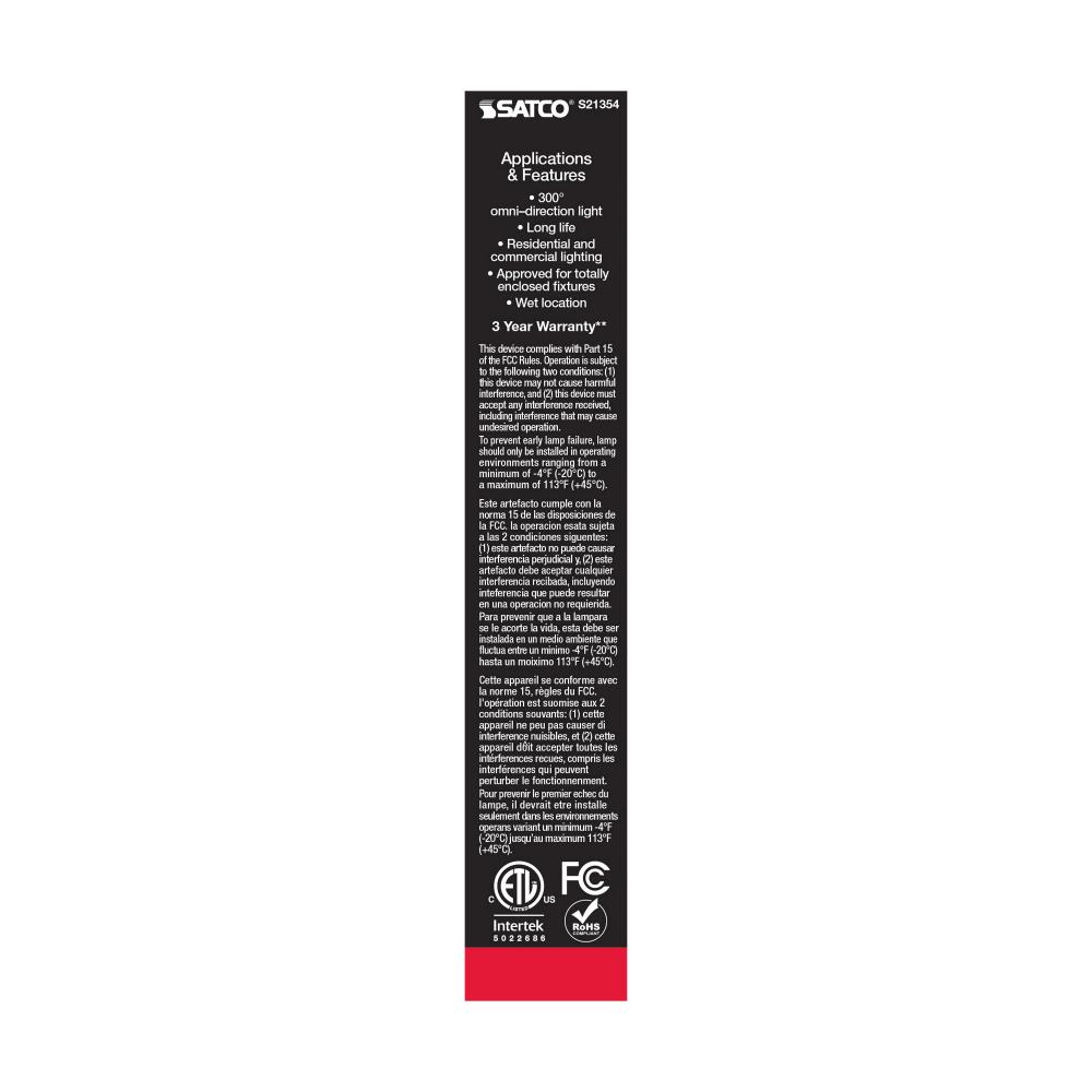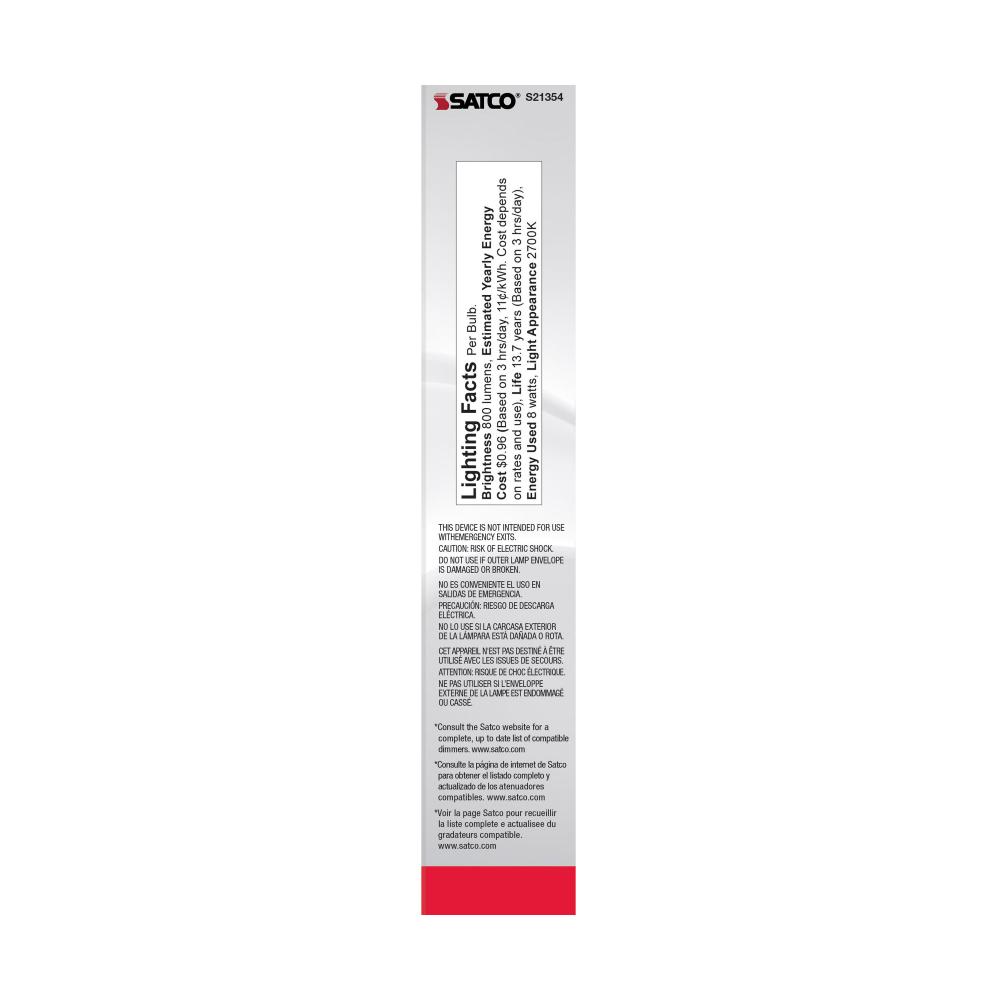 Satco's S21354 8-watt, LED lamp is traditional, yet contemporary with its vintage style and energy saving LED technology. Elegantly illuminate any room in the house with this dimmable, clear bulb. Sophisticated and modern, this lamp delivers 15,000 hou
