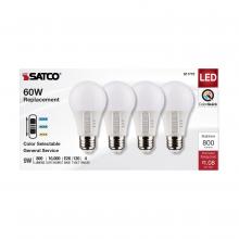 9 Watt A19 LED; Medium Base; CCT Selectable; White Finish; 90 CRI; 120 Volt; 4 Pack