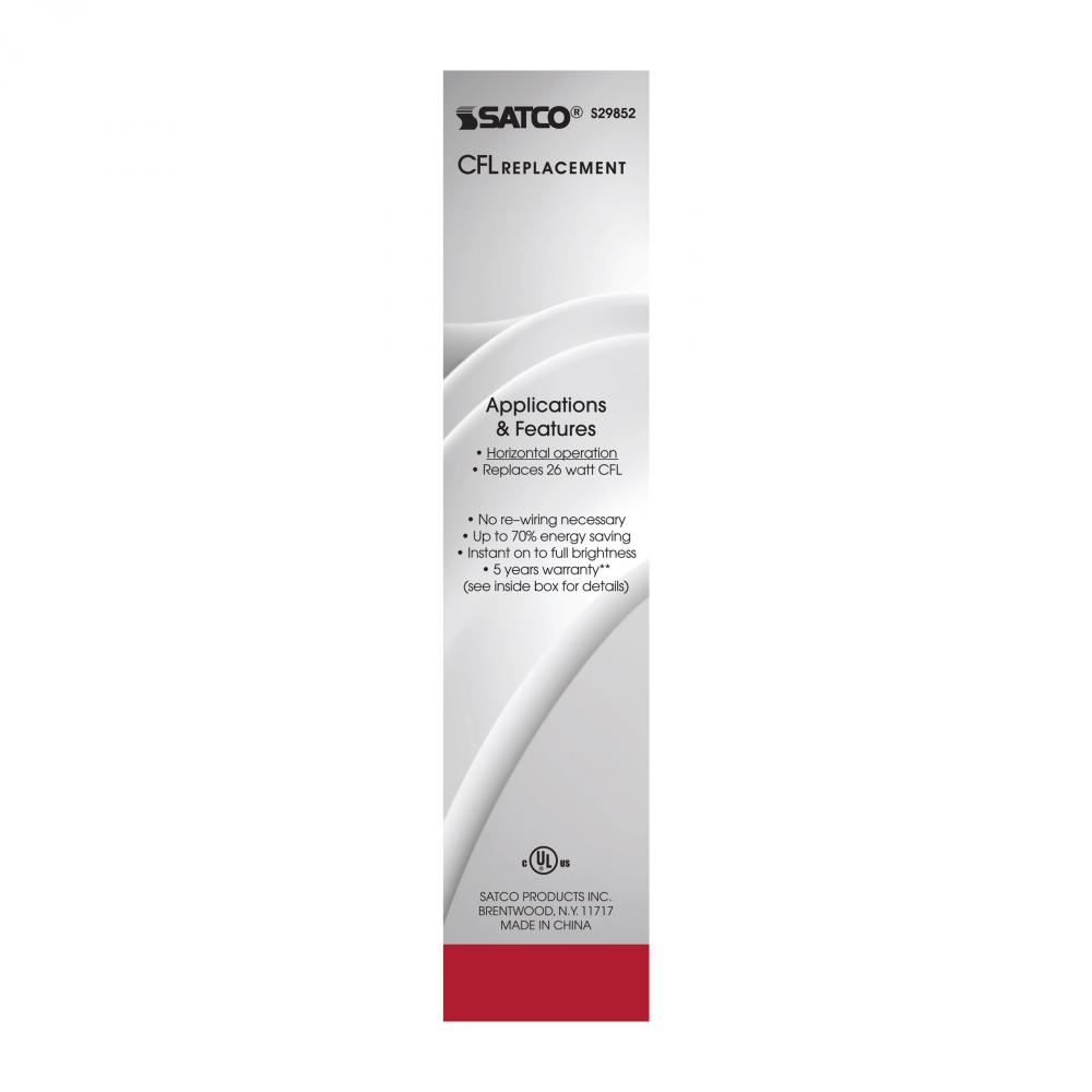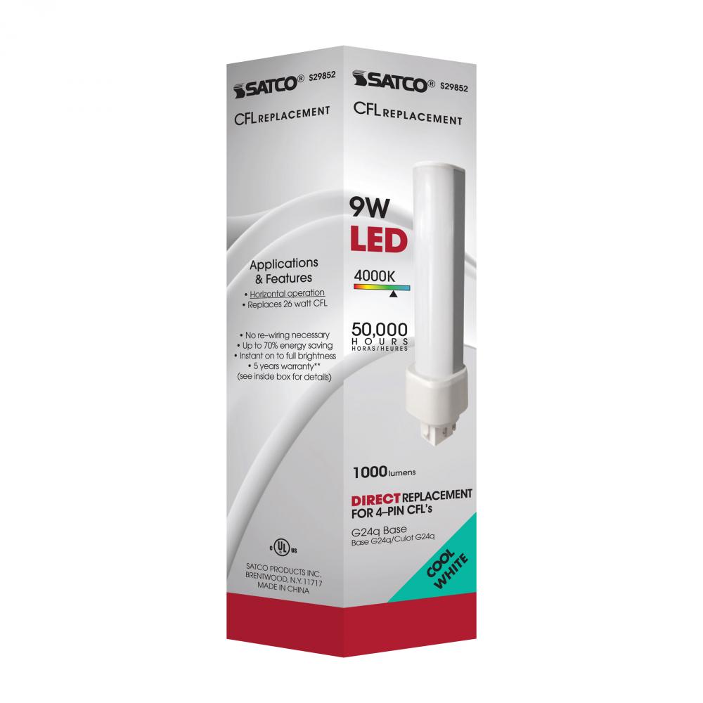 9 Watt LED PL 4-Pin; 4000K; 1100 Lumens; G24q base; 50000 Average rated hours; 120 Deg. Beam Angle; Type A; Ballast dependent